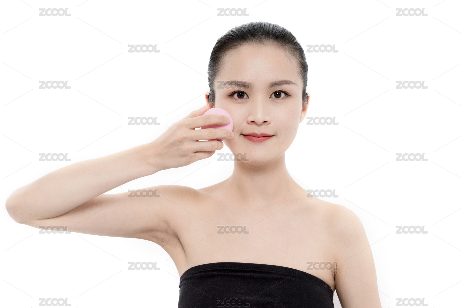 用潔面儀洗臉的年輕女性