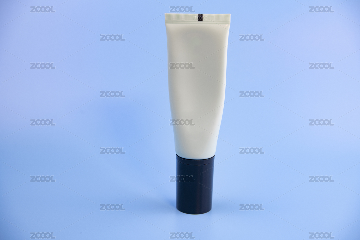藍(lán)色背景中放著一支潔面霜