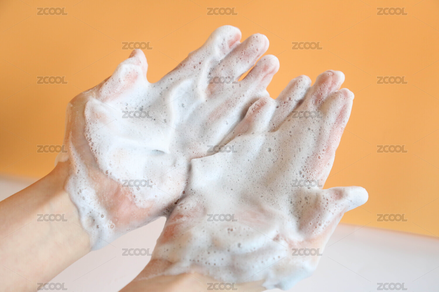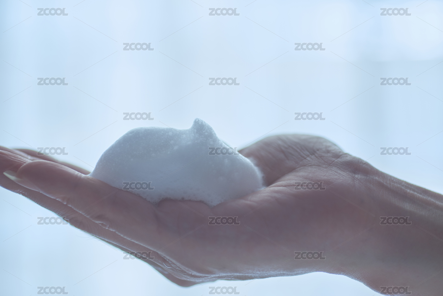 手掌中一團(tuán)綿密的潔面泡沫