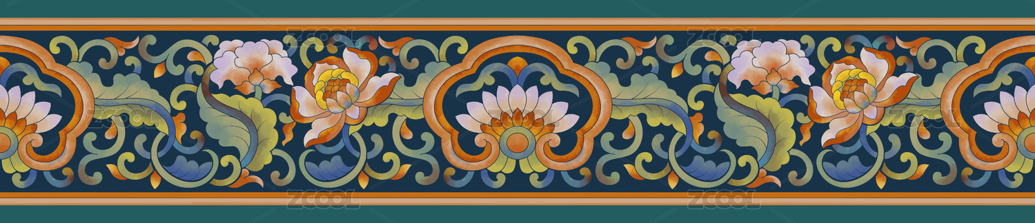 半邊團花花紋彩畫邊紋