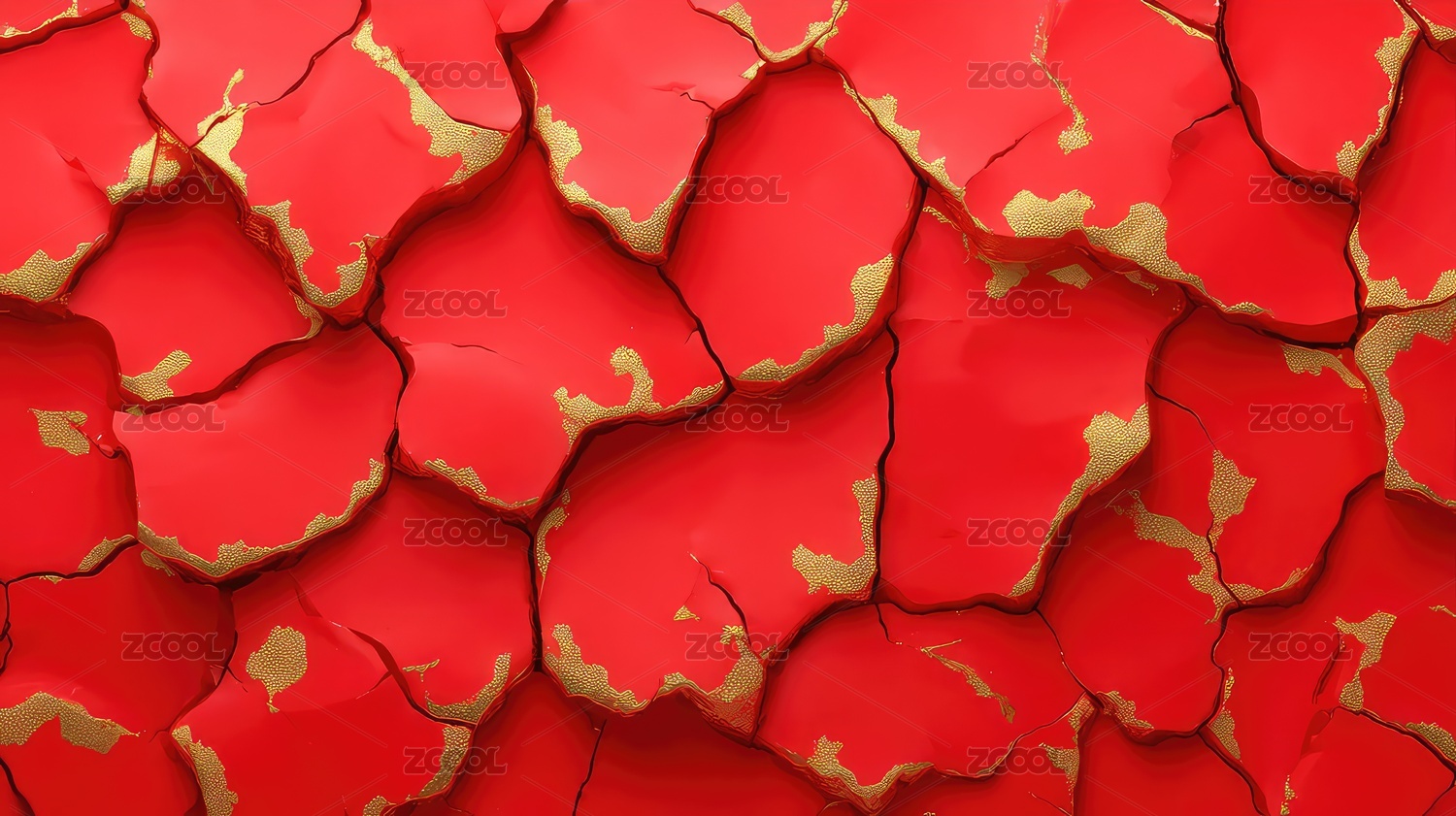 紅色碎片與金邊紋理的抽象藝術