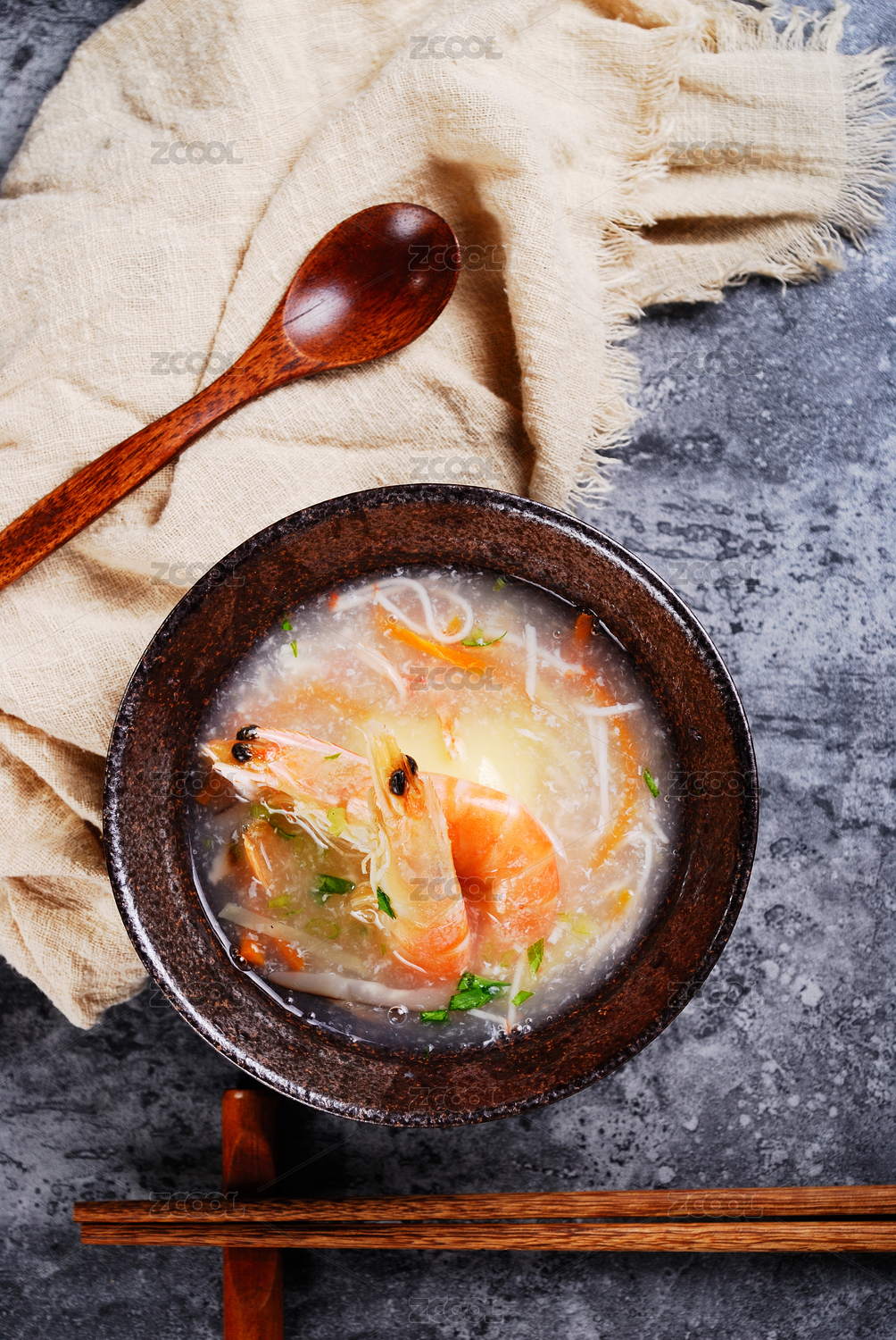 中國(guó)廣東的一道粵菜——蝦湯海鮮脆米泡飯