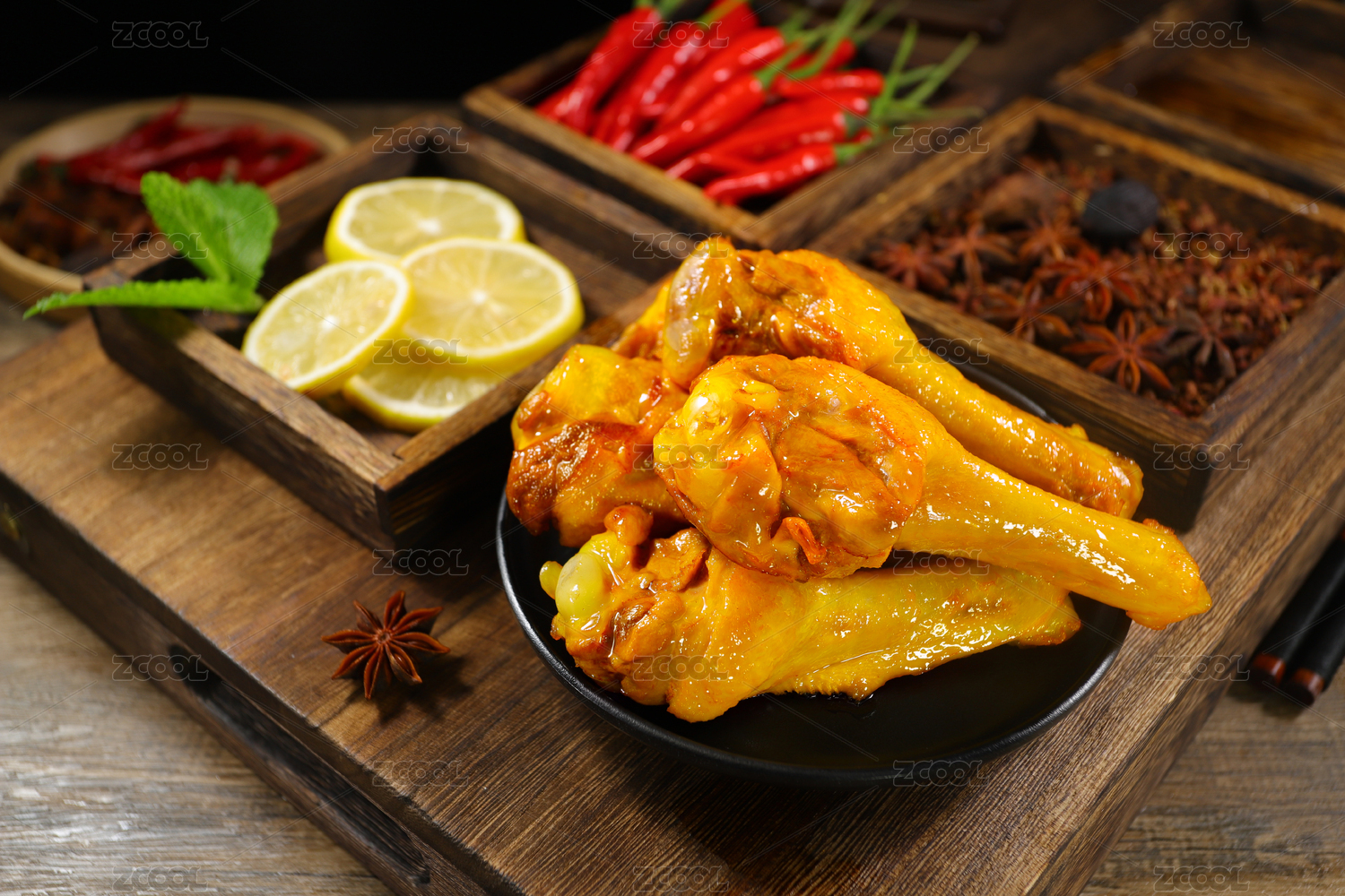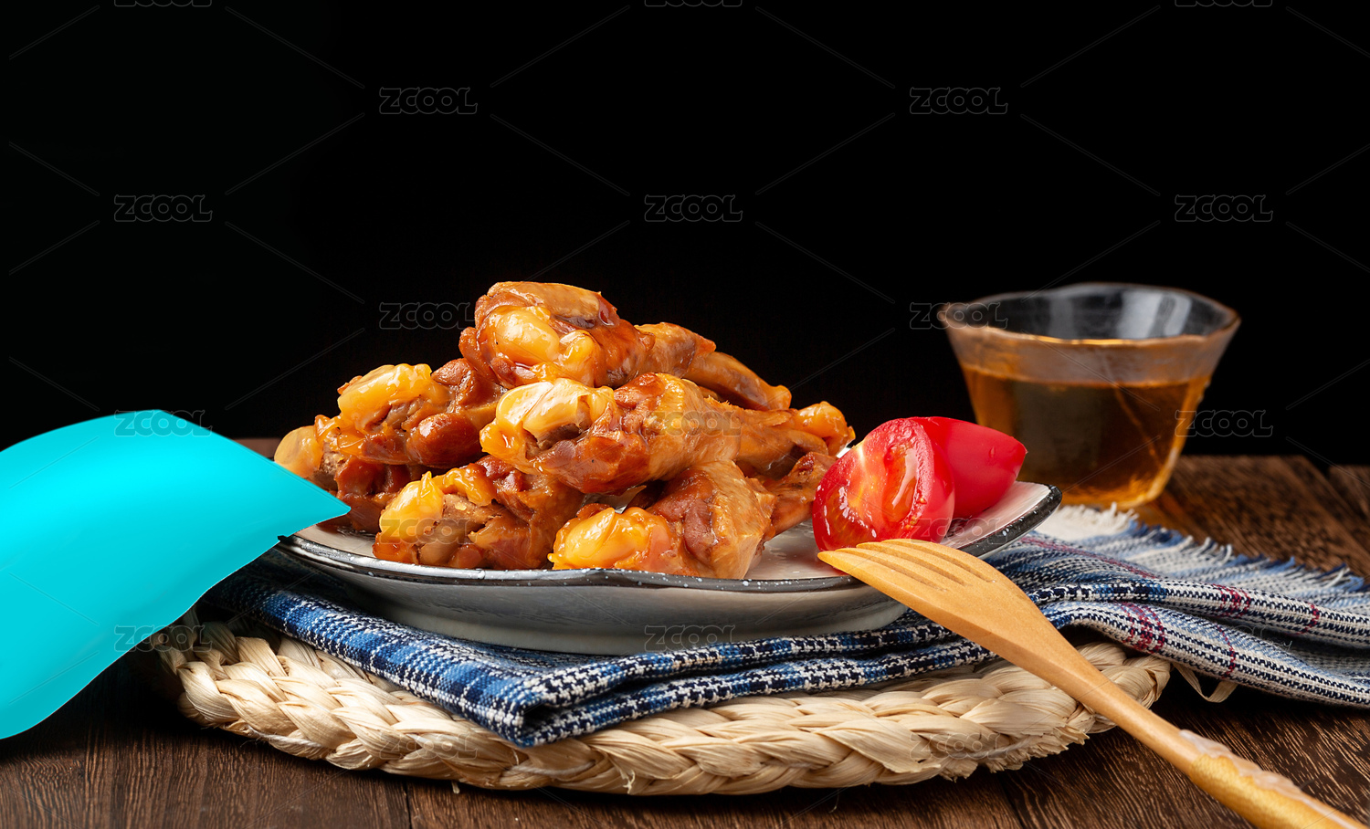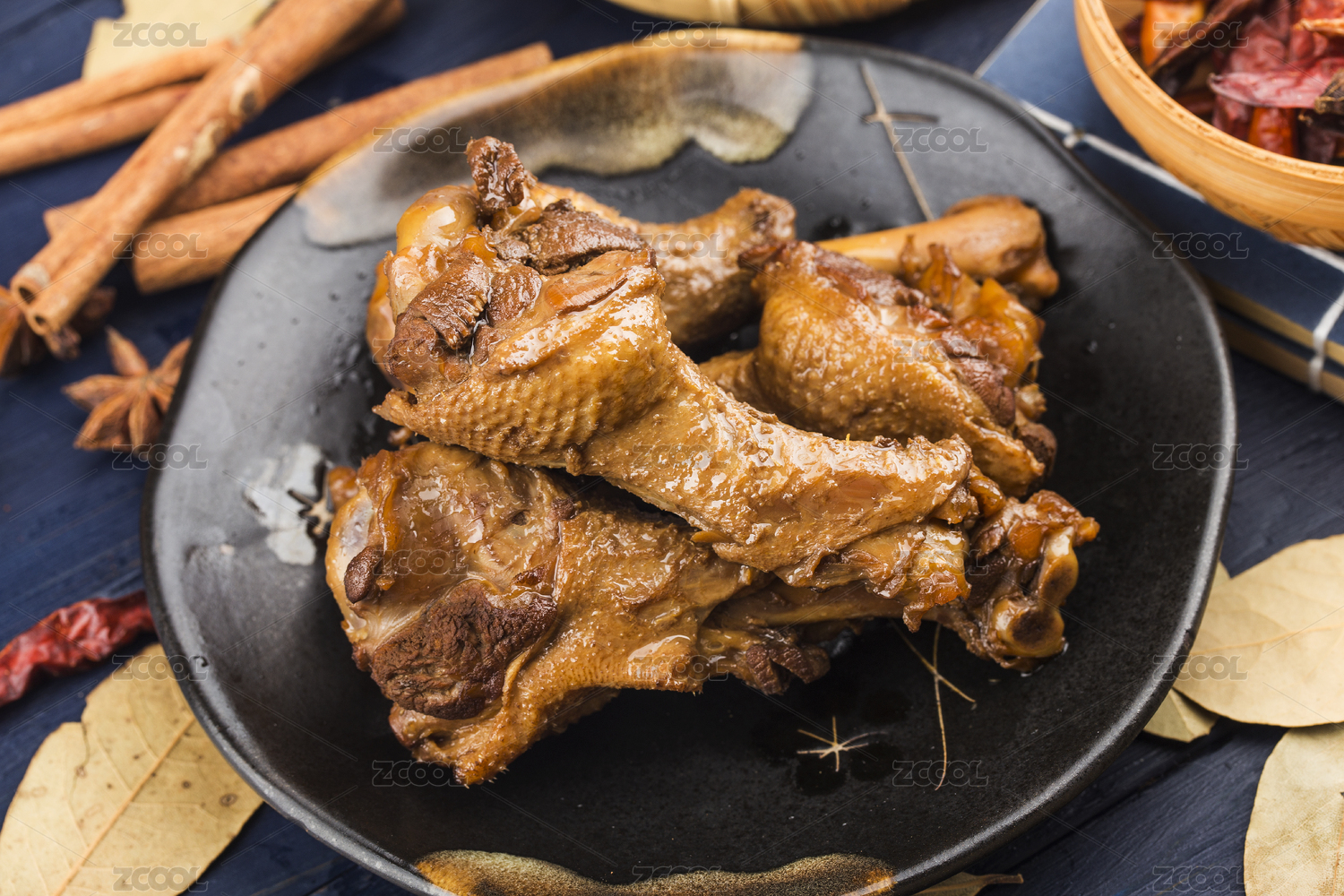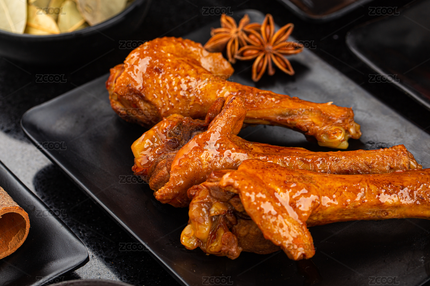 木紋古風黑盤子的鹽焗鴨翅根零食