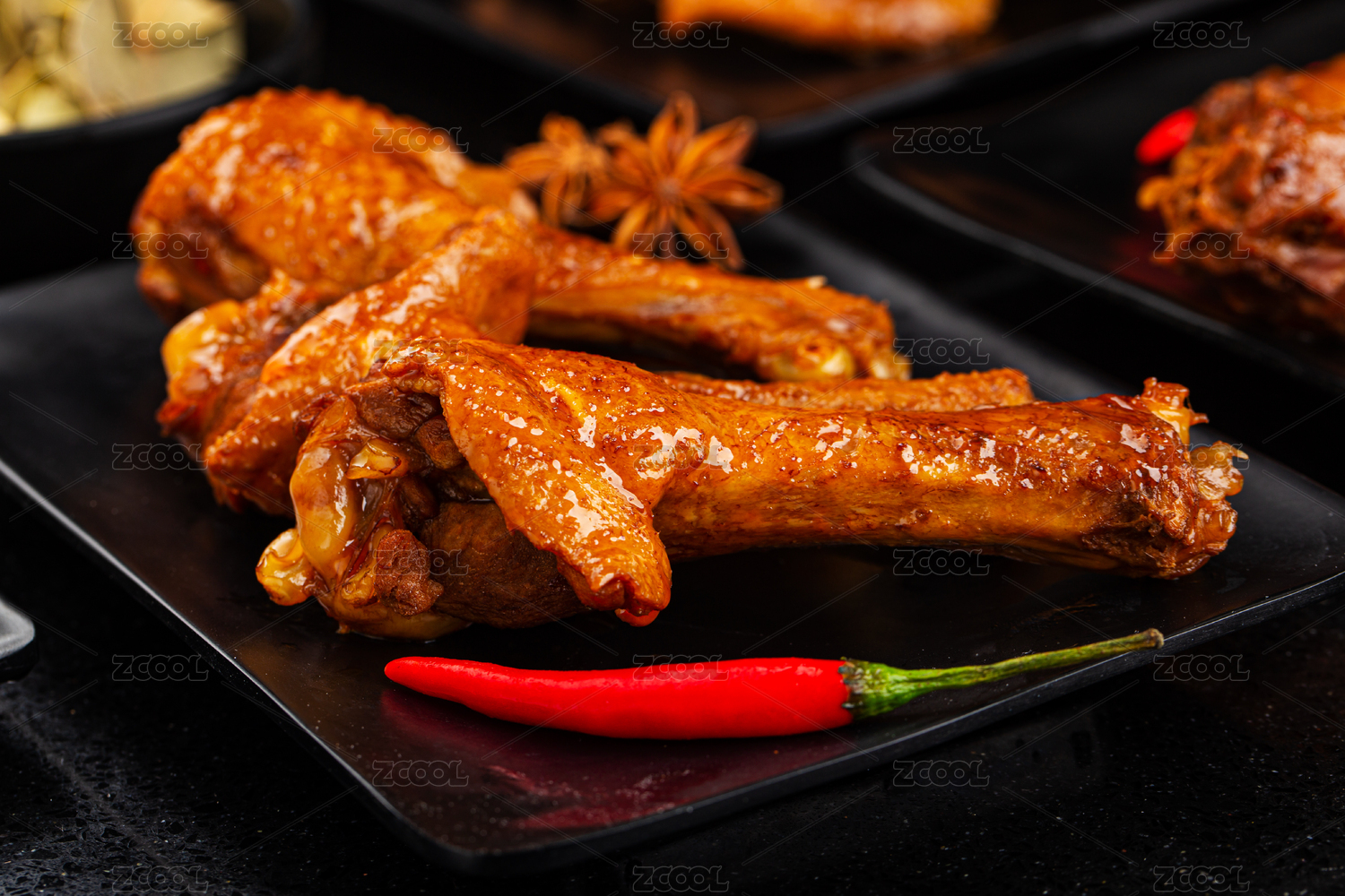 黑盤子上的鹽焗鴨翅根