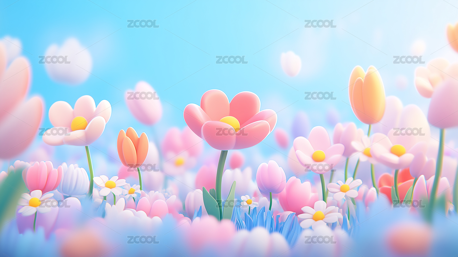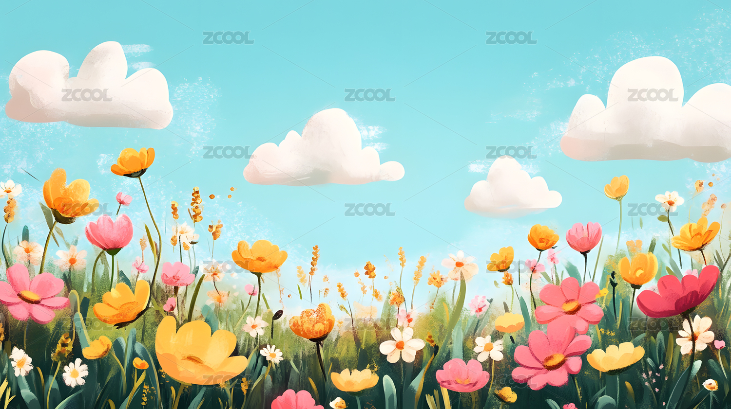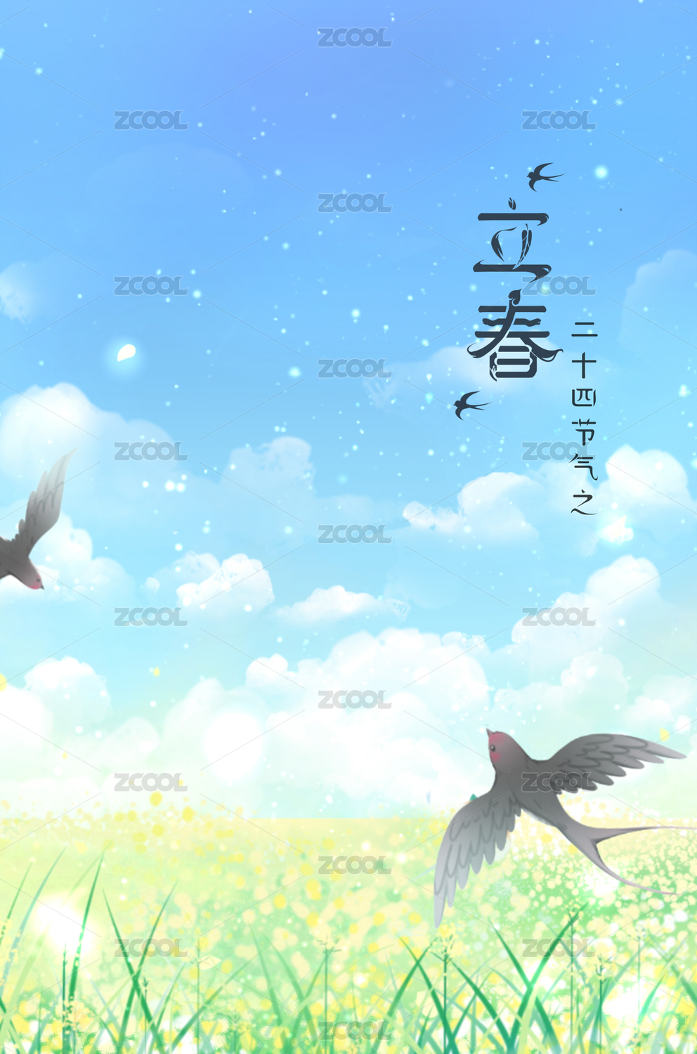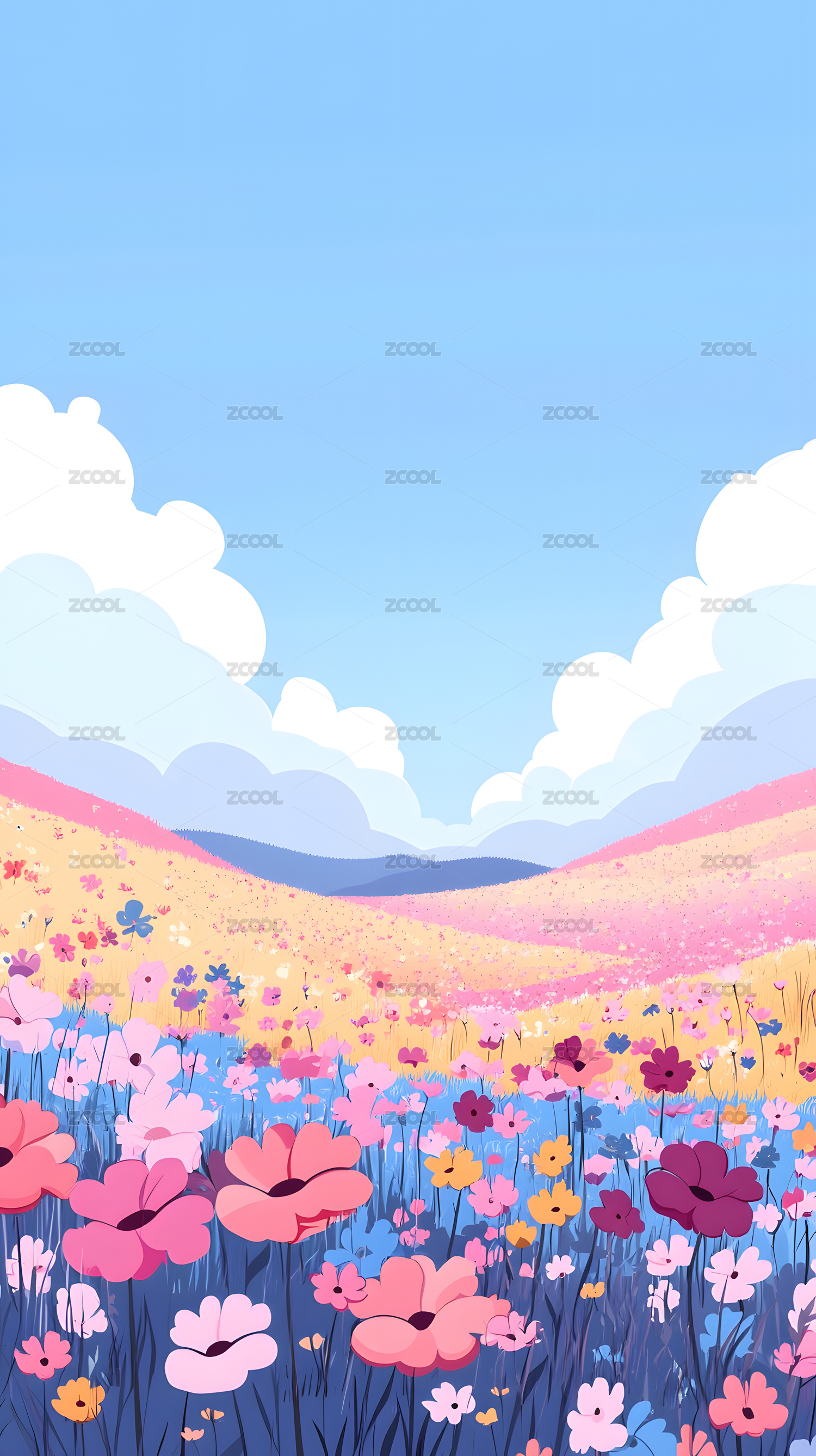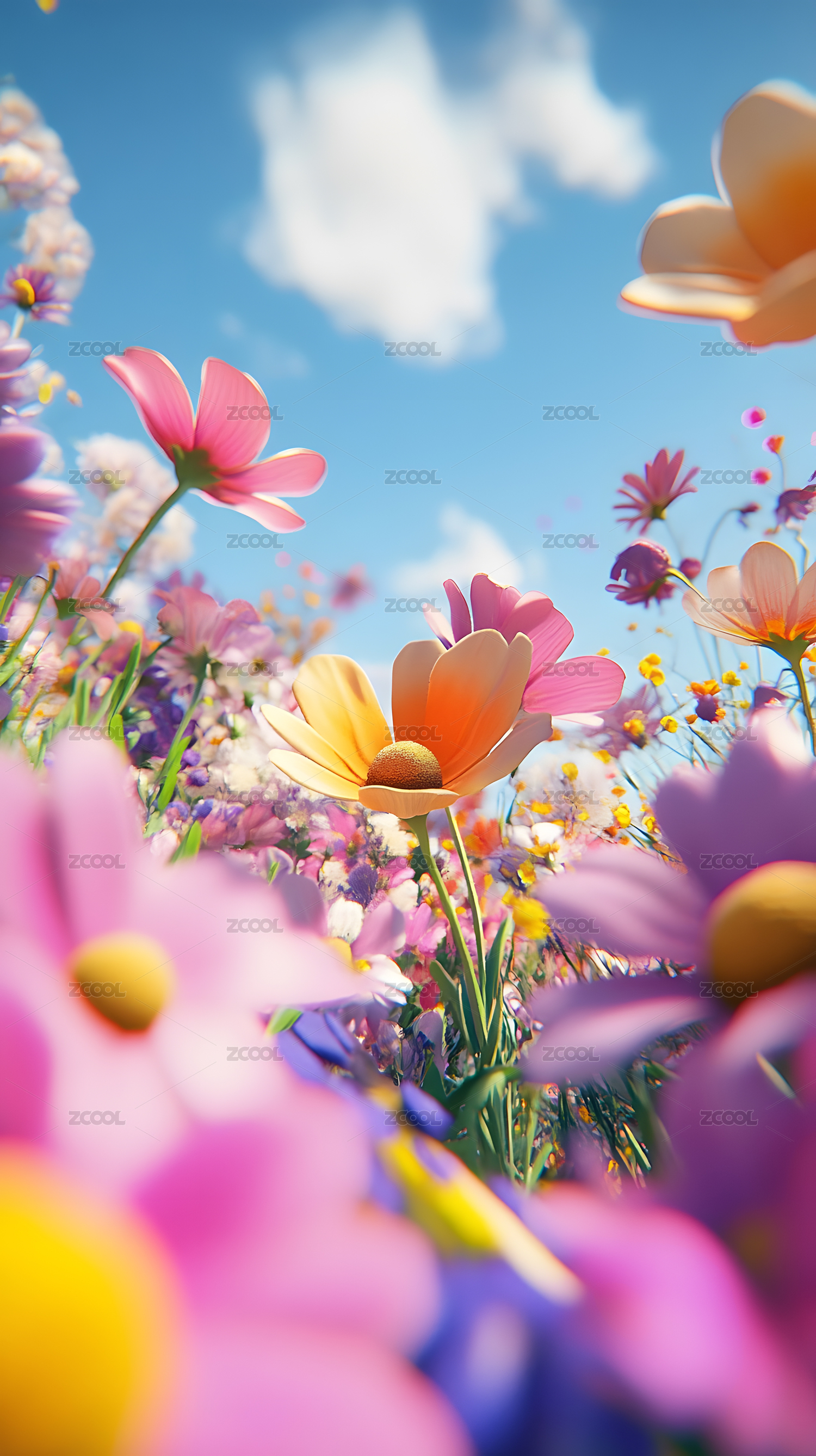 春日花田下的藍(lán)天白云