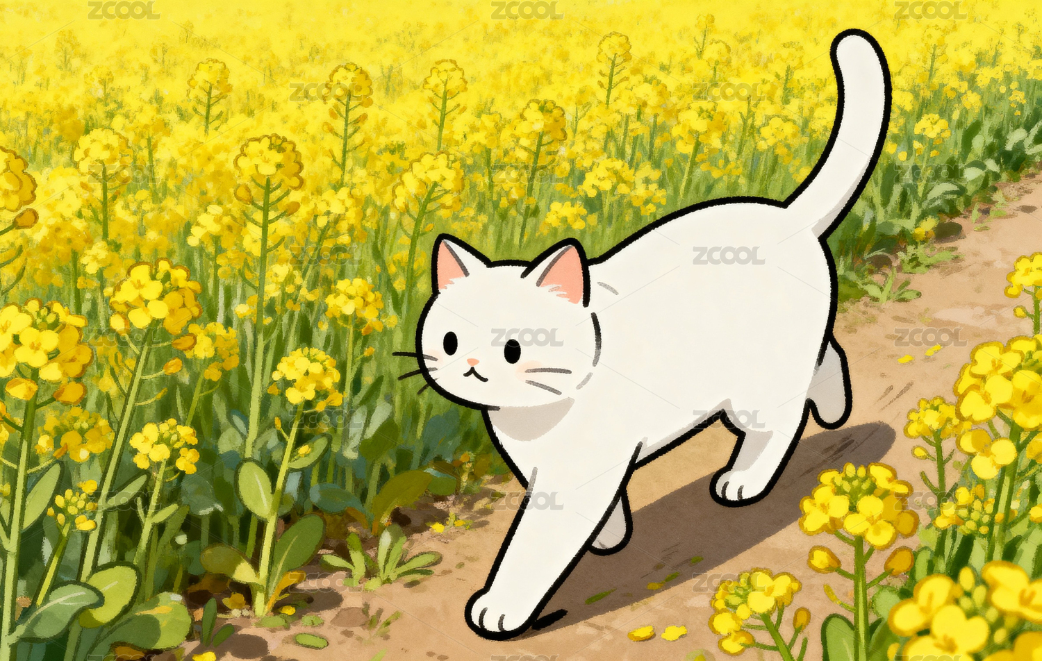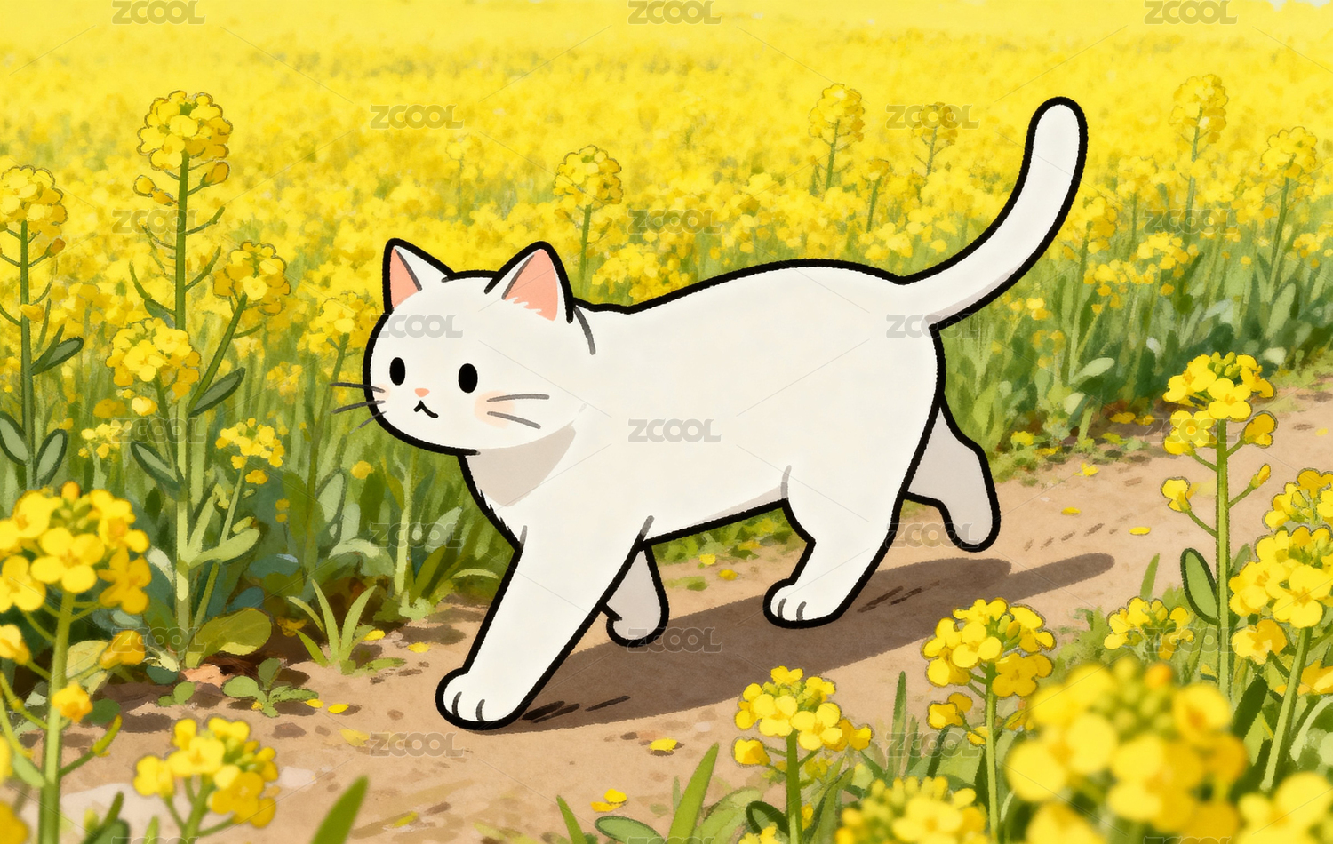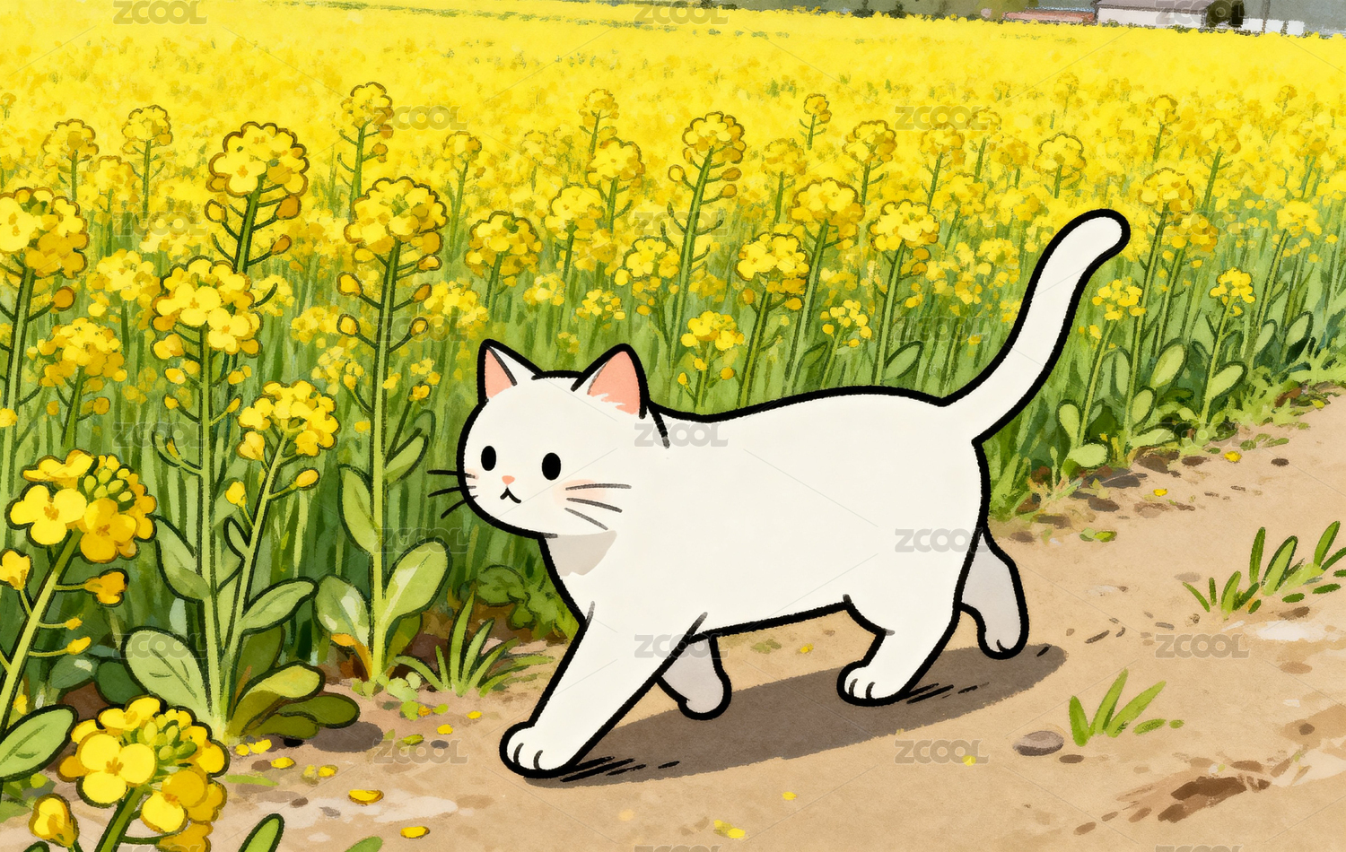 春日花田白貓漫步圖