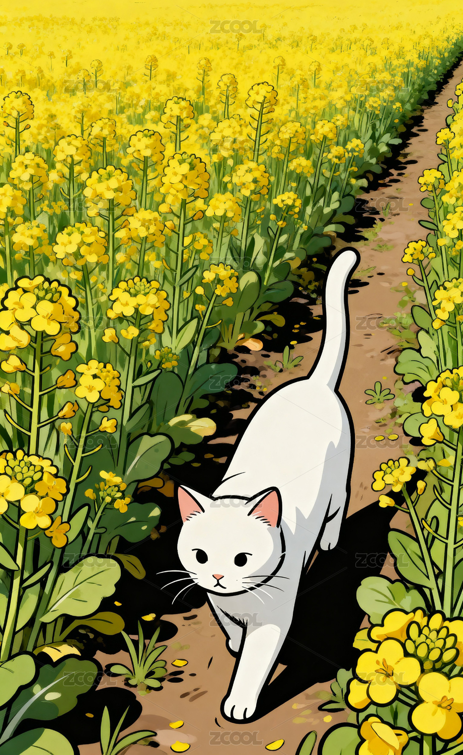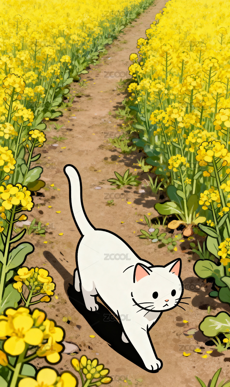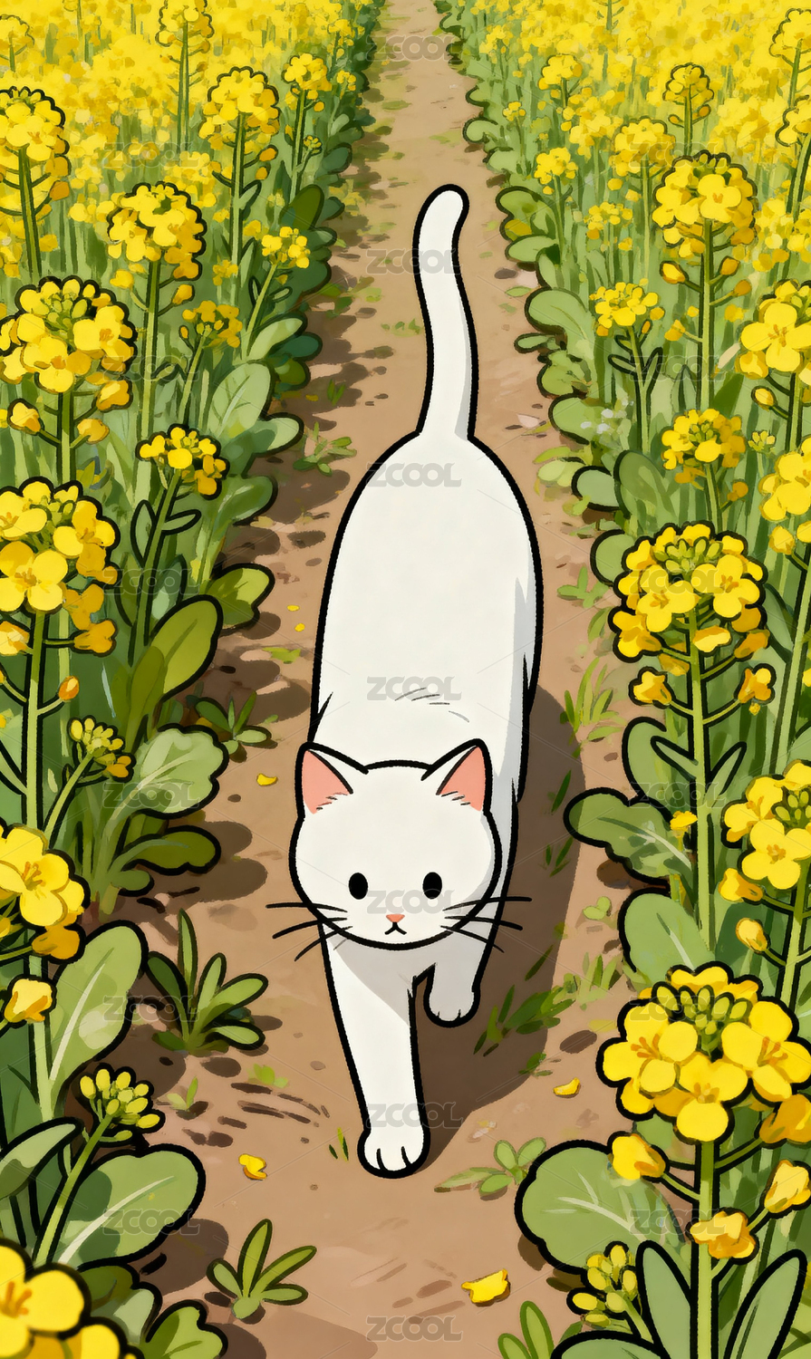 春日花田白貓漫步圖