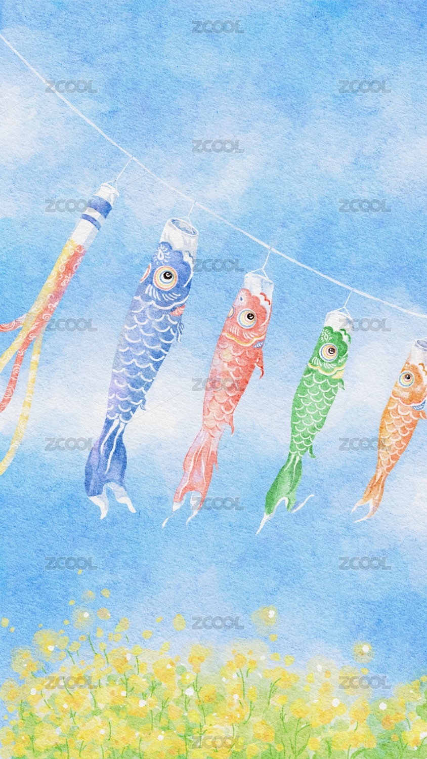 春天油菜花田上空飄揚(yáng)的鯉魚旗