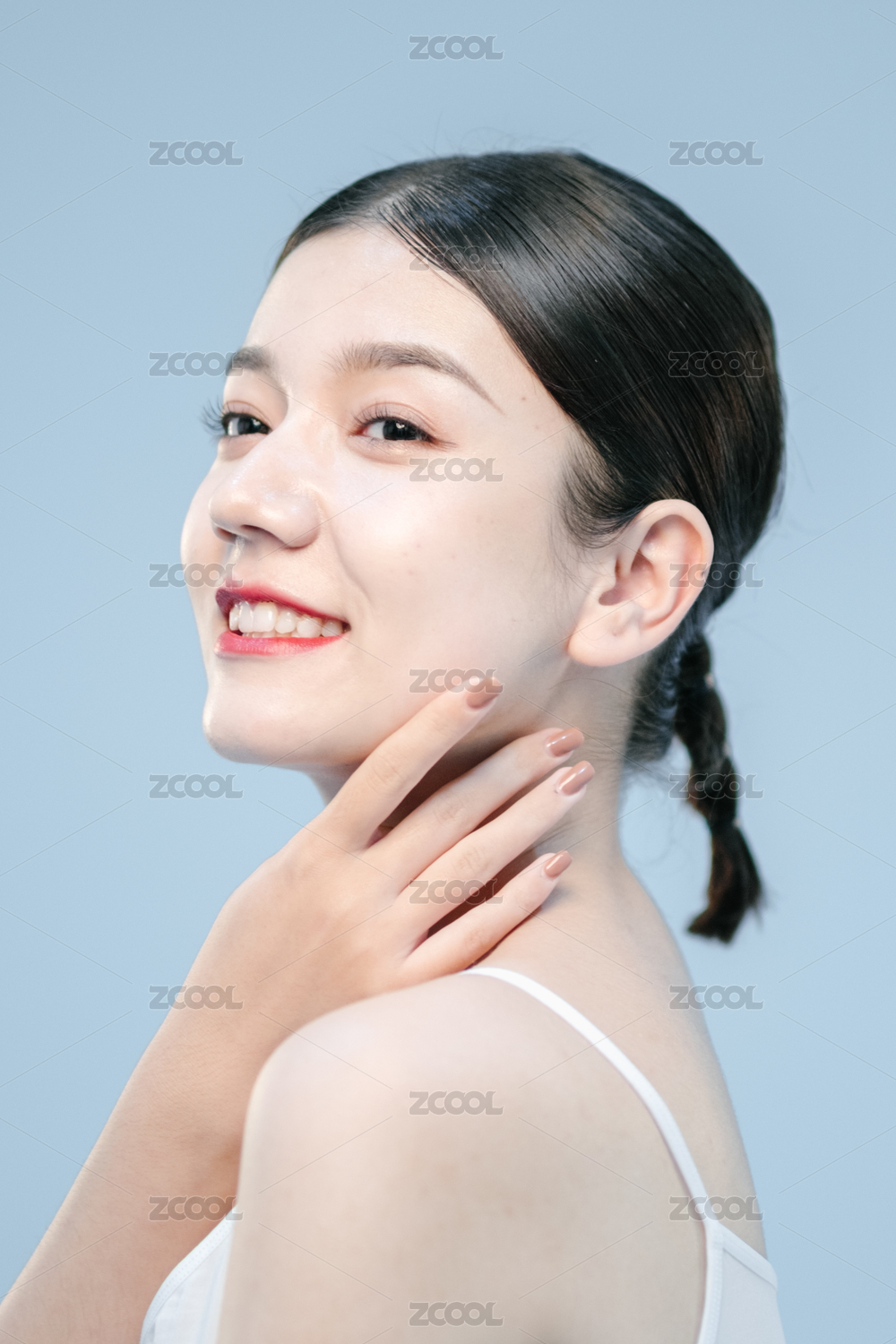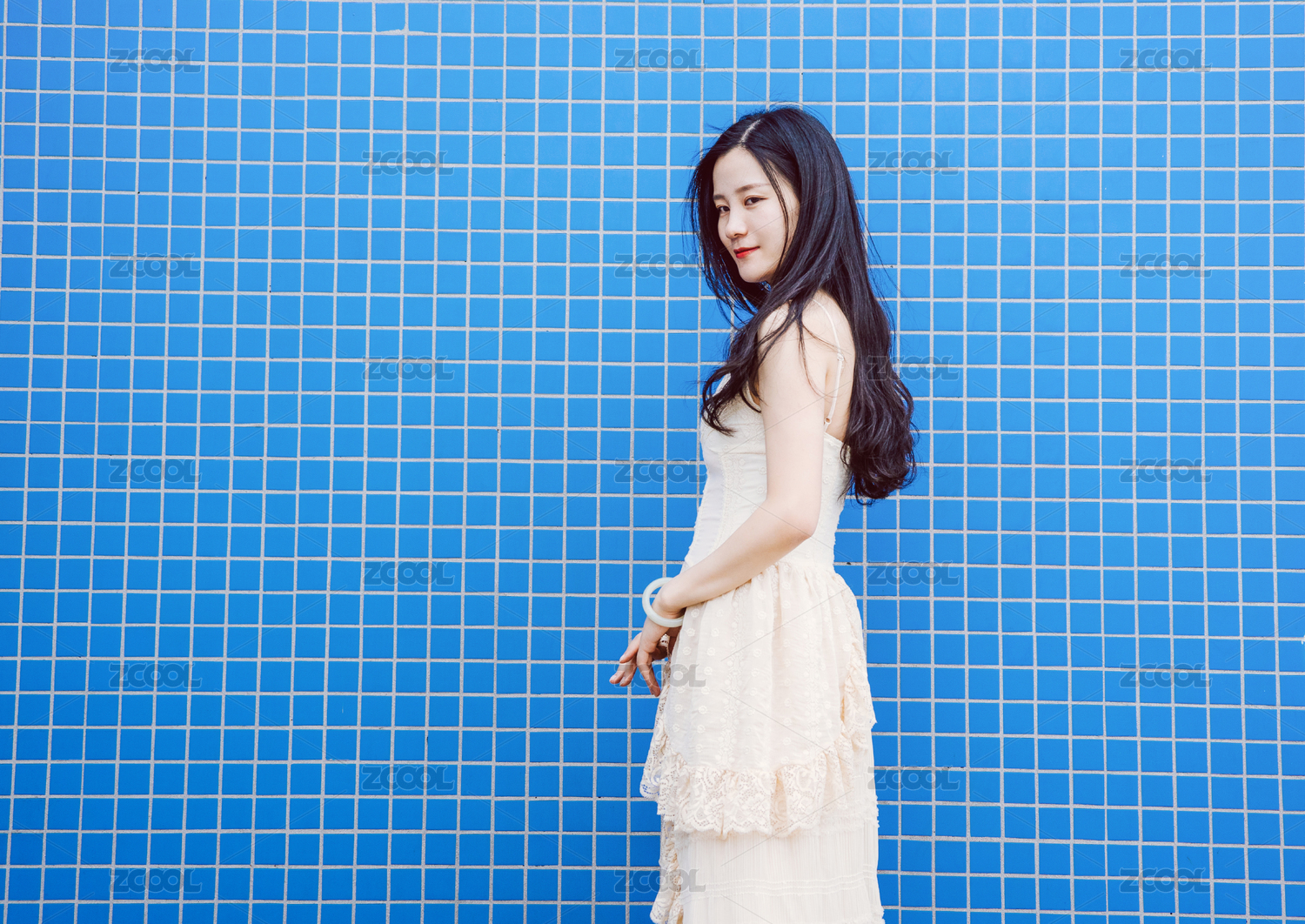 手里拿著禮物盒的可愛女孩站在純色背景墻前