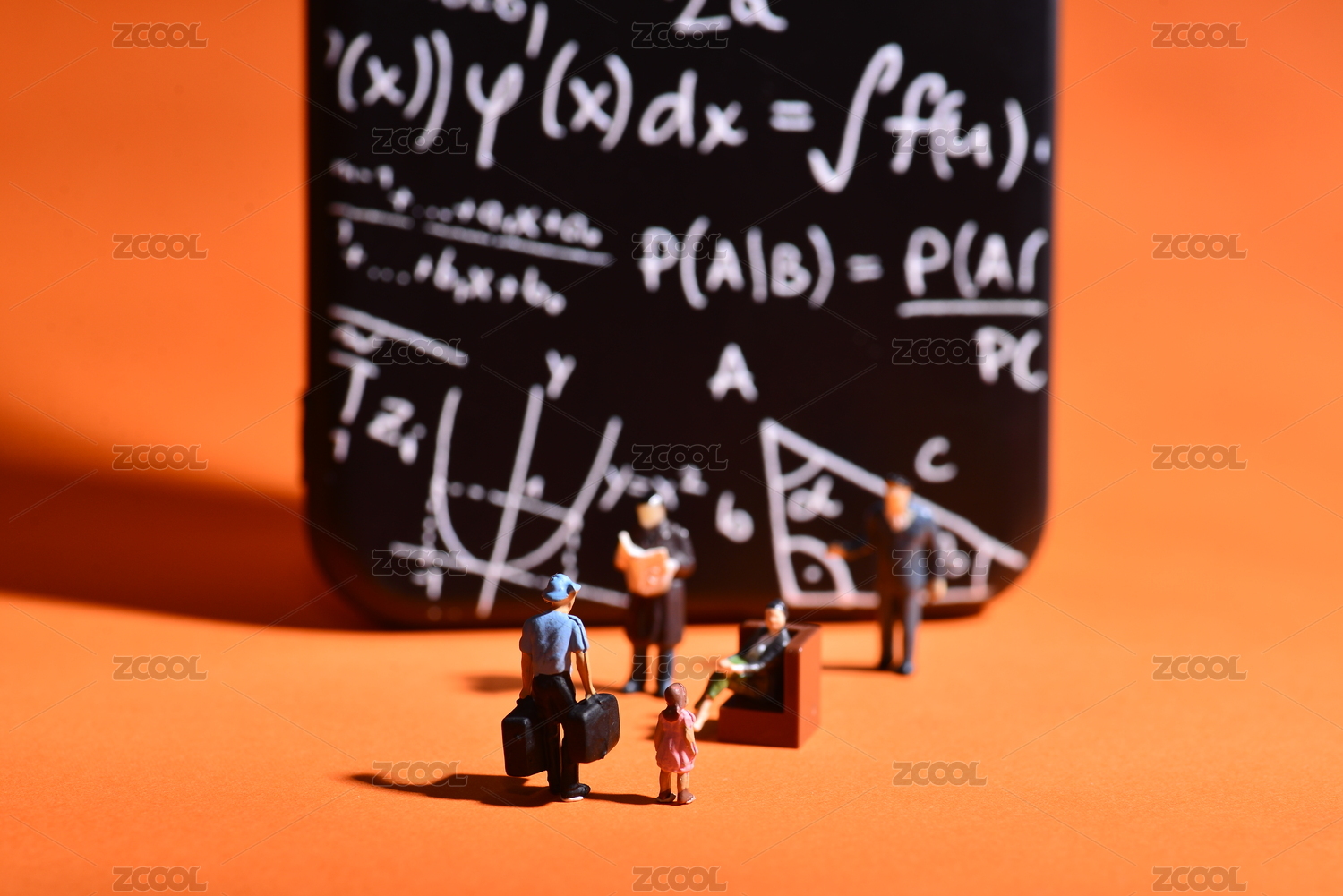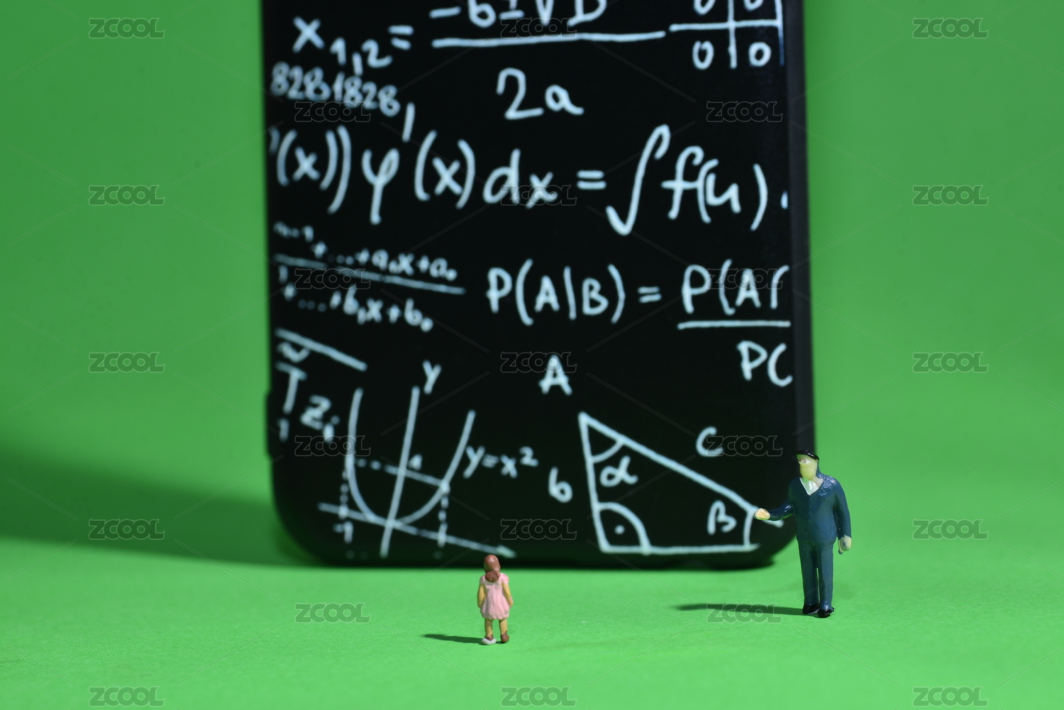 微縮創(chuàng)意攝影在黑板前面的學(xué)生