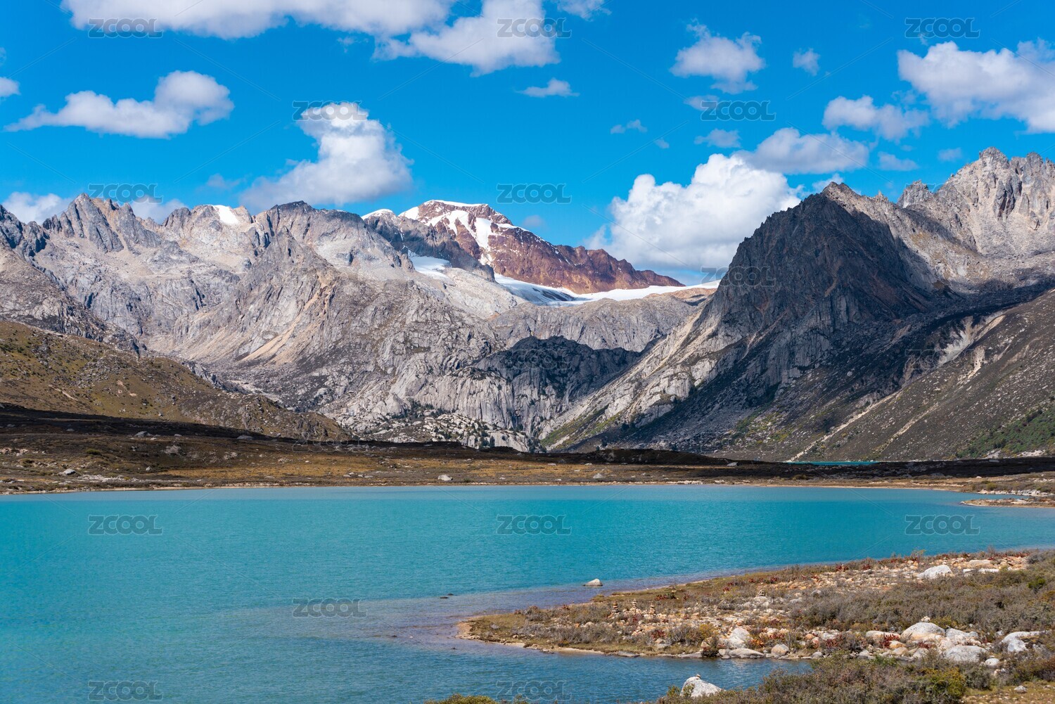 中國四川甘孜川藏線上碧綠的姐妹湖與高山