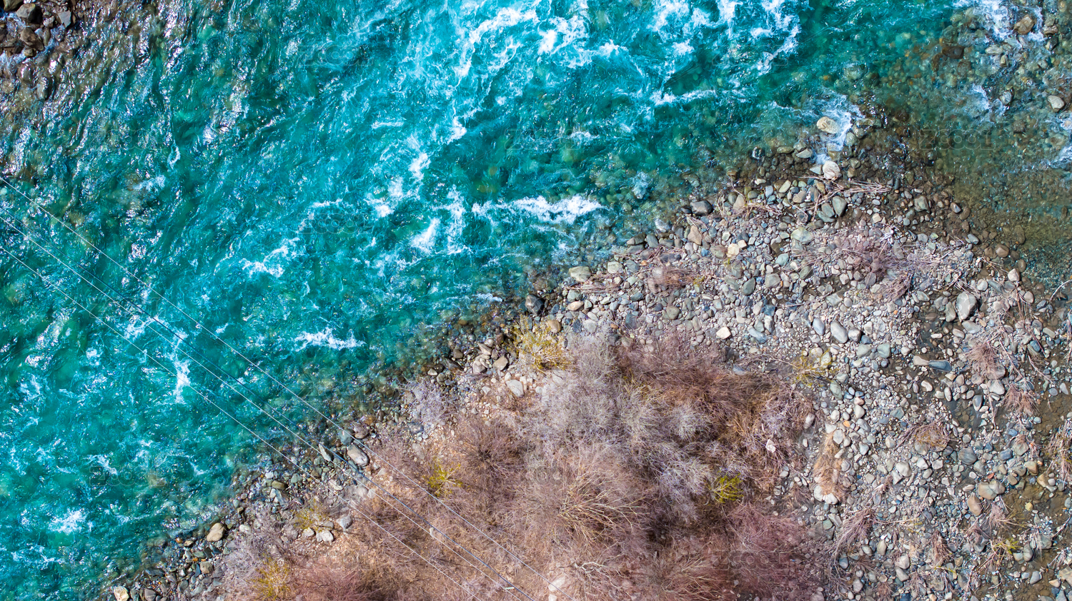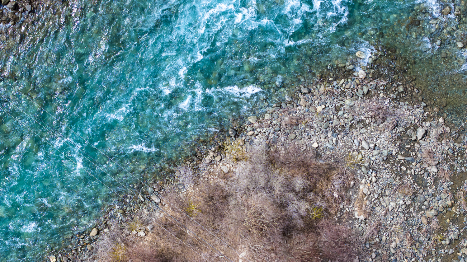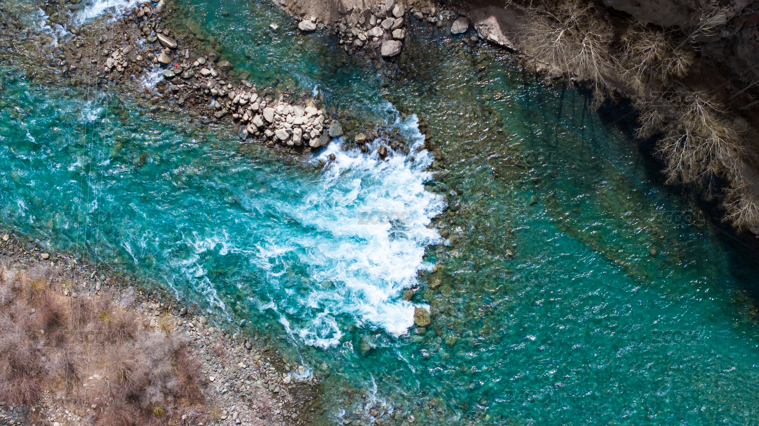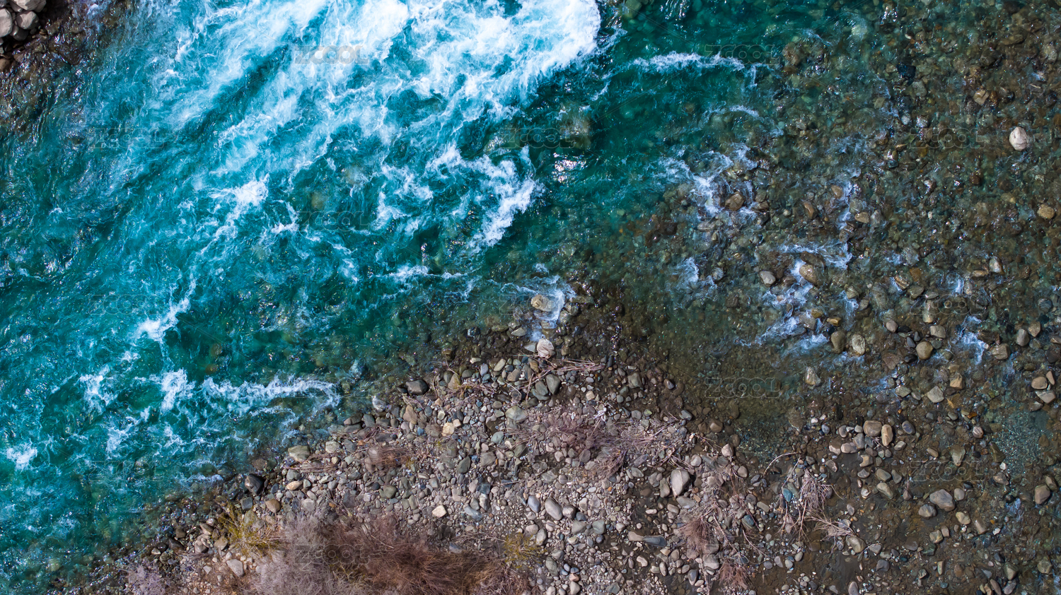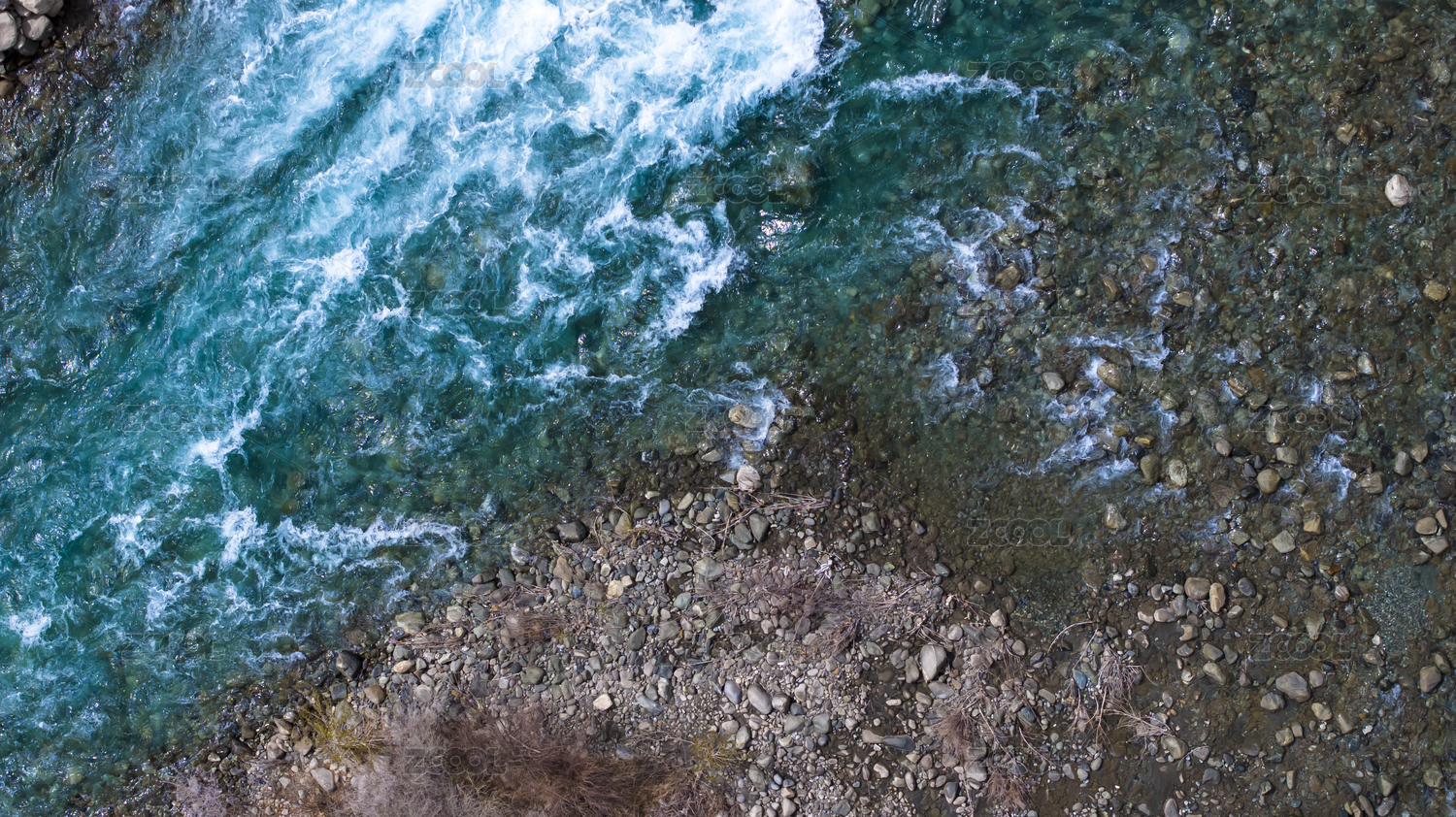 俯拍碧綠的河流流動青山綠水唯美治愈