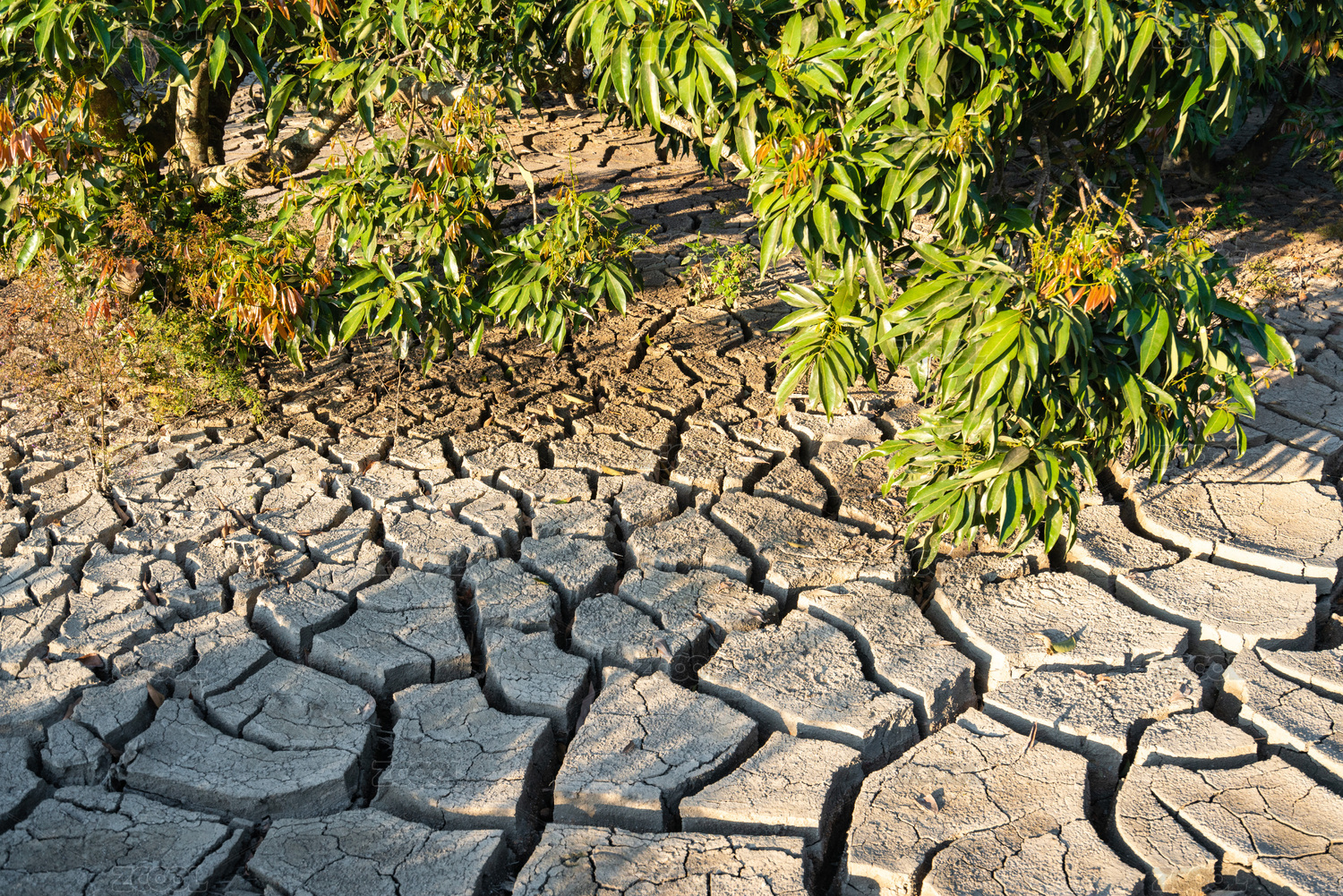 碧綠的荔枝葉和干涸的地面