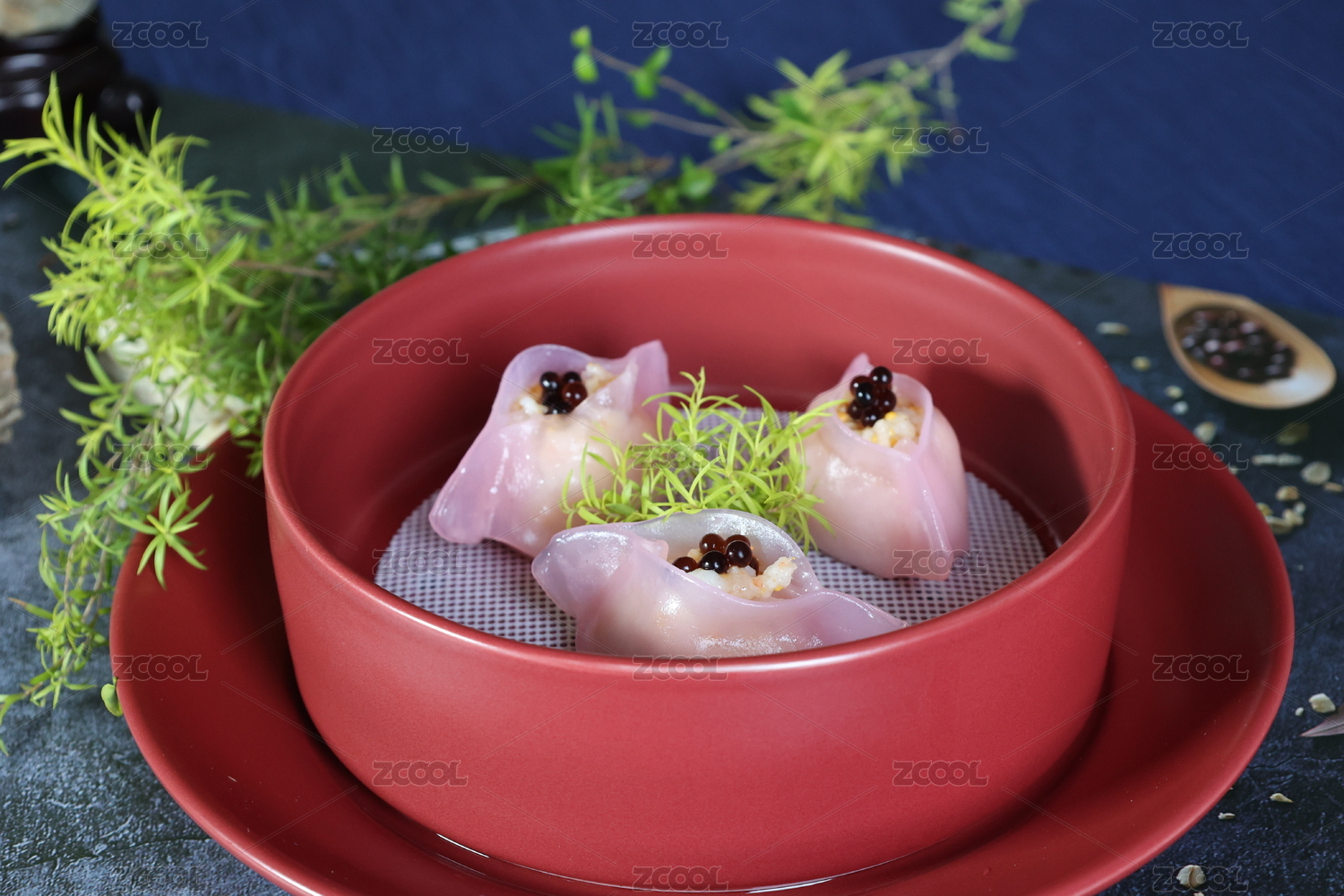 精致蝦餃配魚子醬擺盤