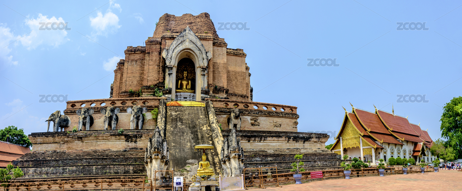 東南亞泰國(guó)泰北清邁大塔寺契迪龍寺全景