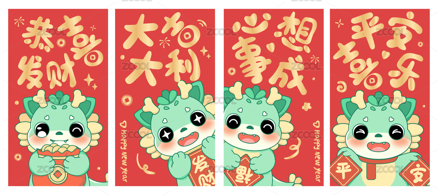 中國傳統(tǒng)節(jié)日春節(jié)龍年新年紅包原創(chuàng)插畫