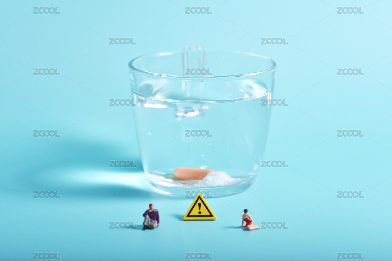 藍(lán)色背景上的微縮創(chuàng)意攝影飲用水安全主題
