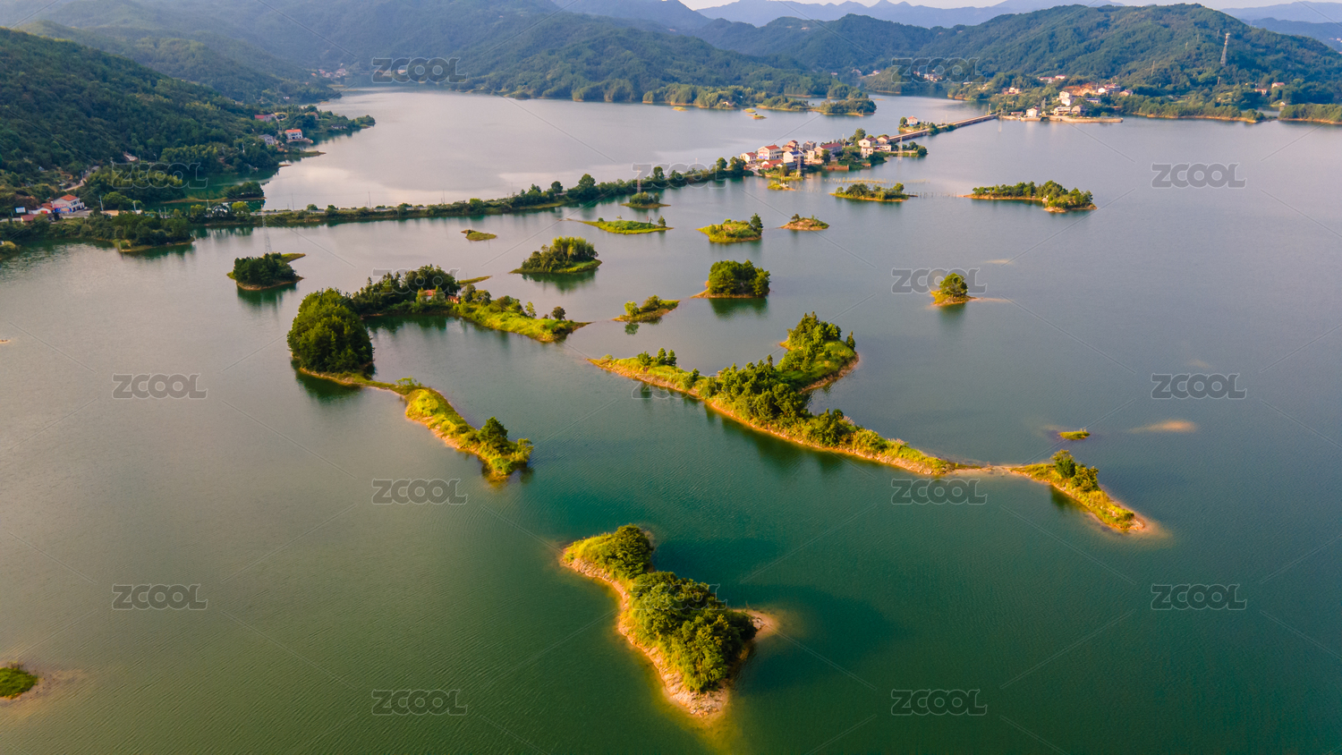 航拍中國(guó)湖南岳陽(yáng)的千島湖--水源地鐵山水庫(kù)