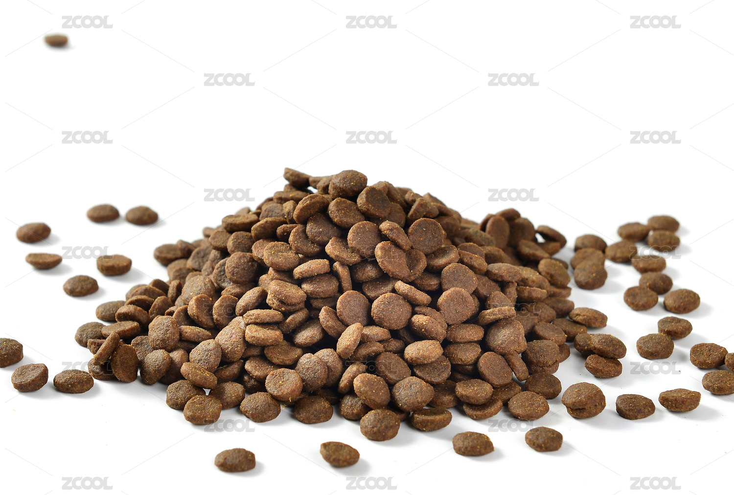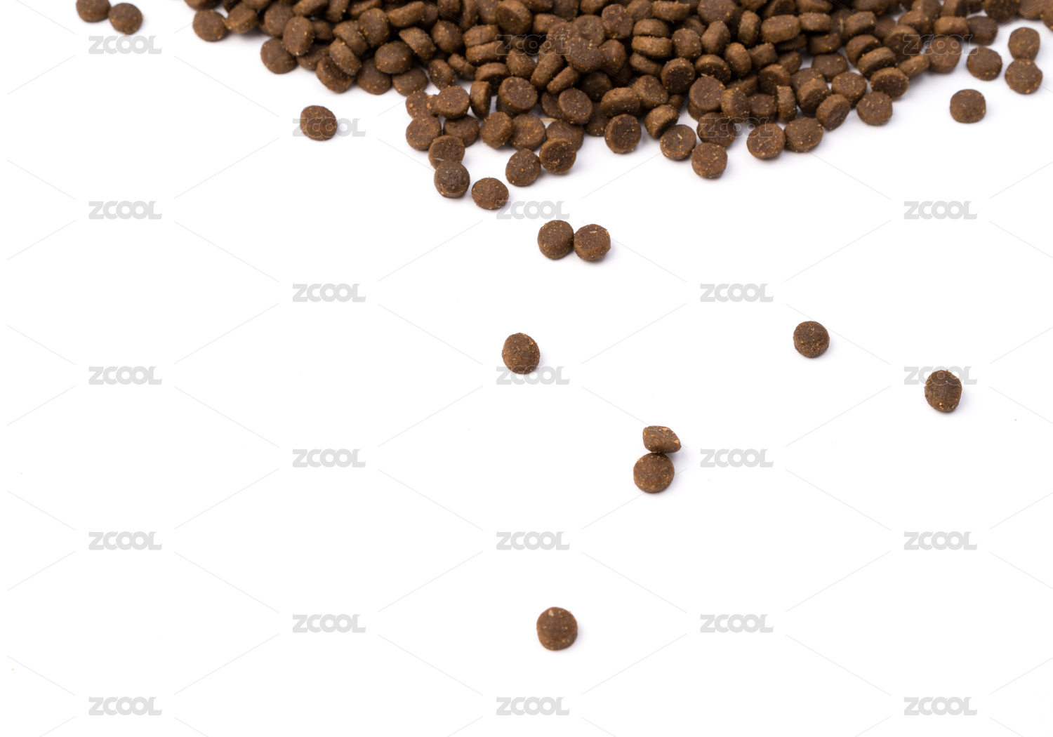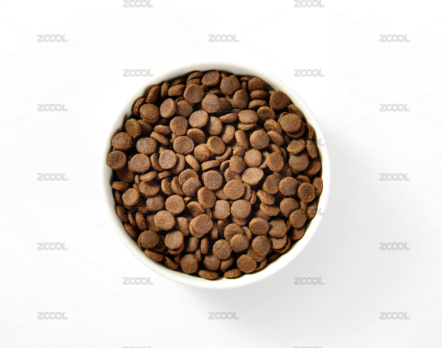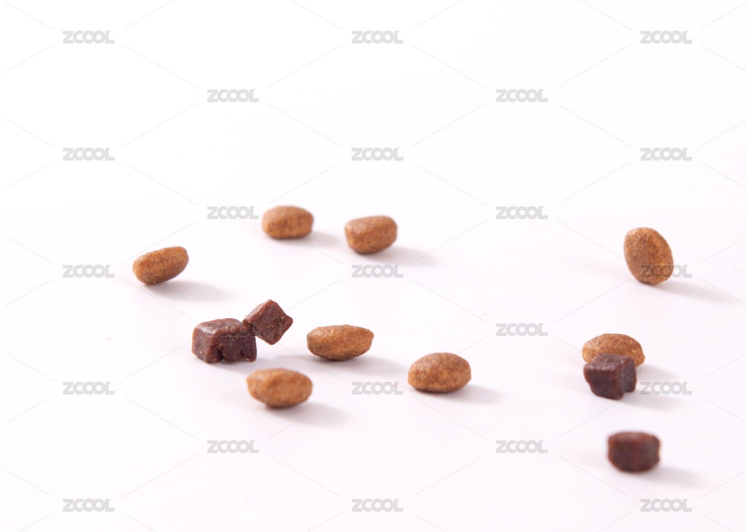 白色背景上擺放的寵物食品貓糧狗糧