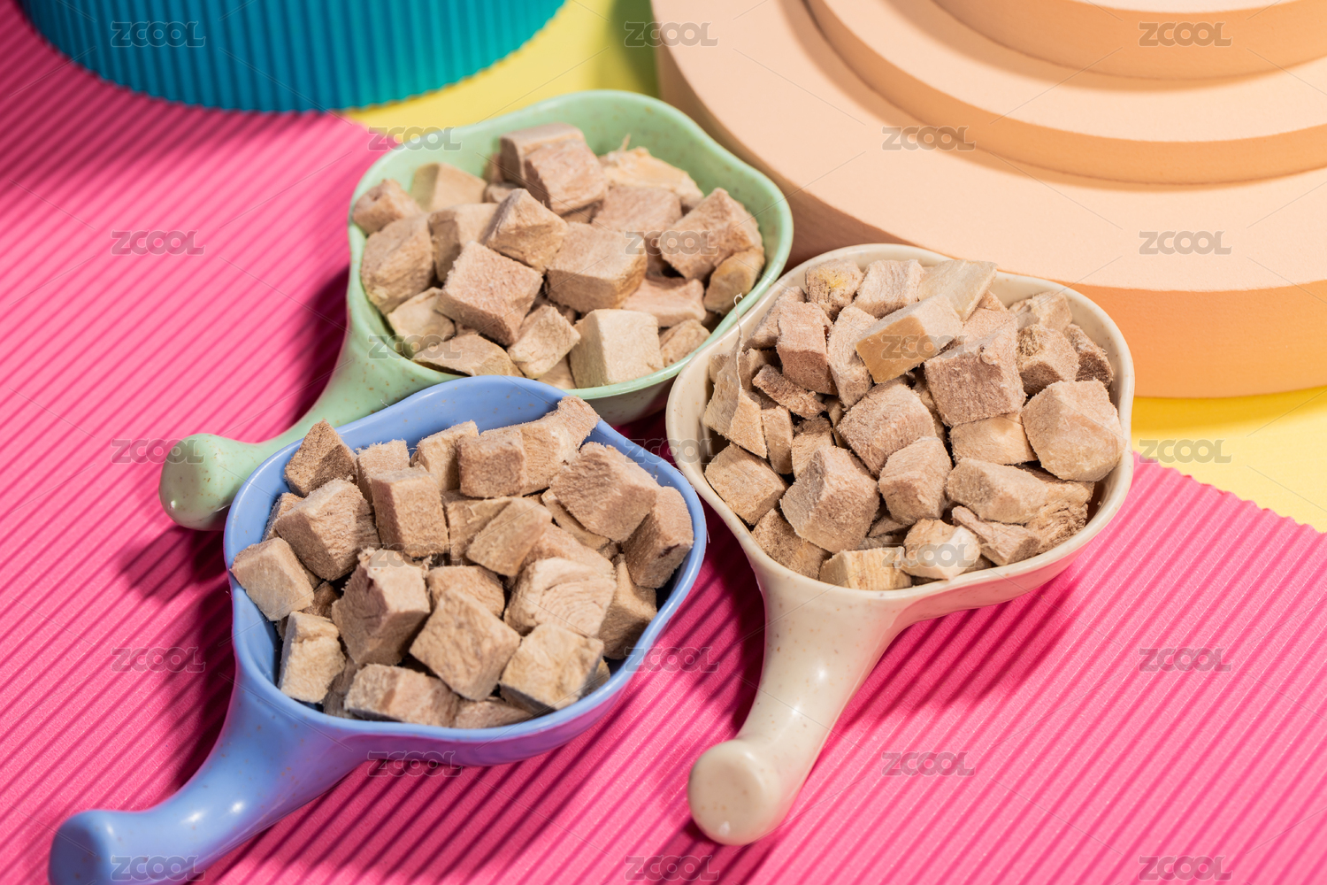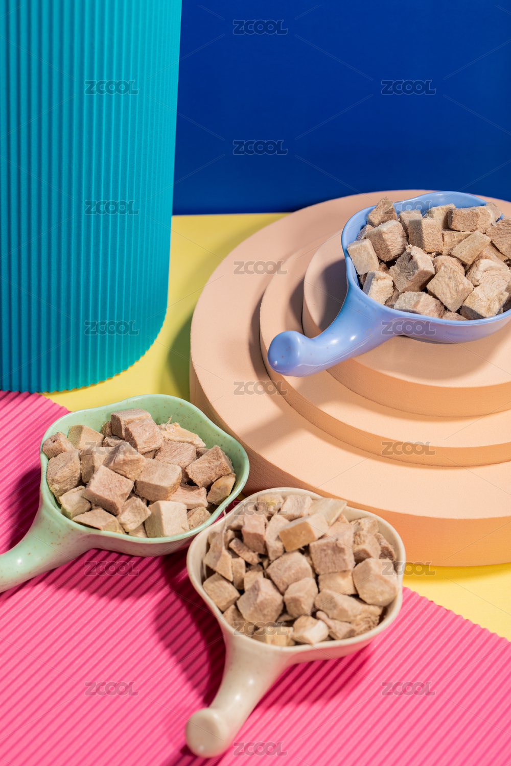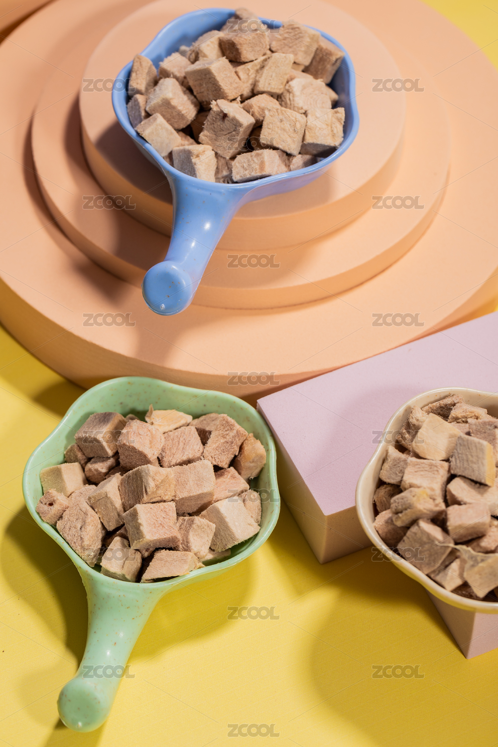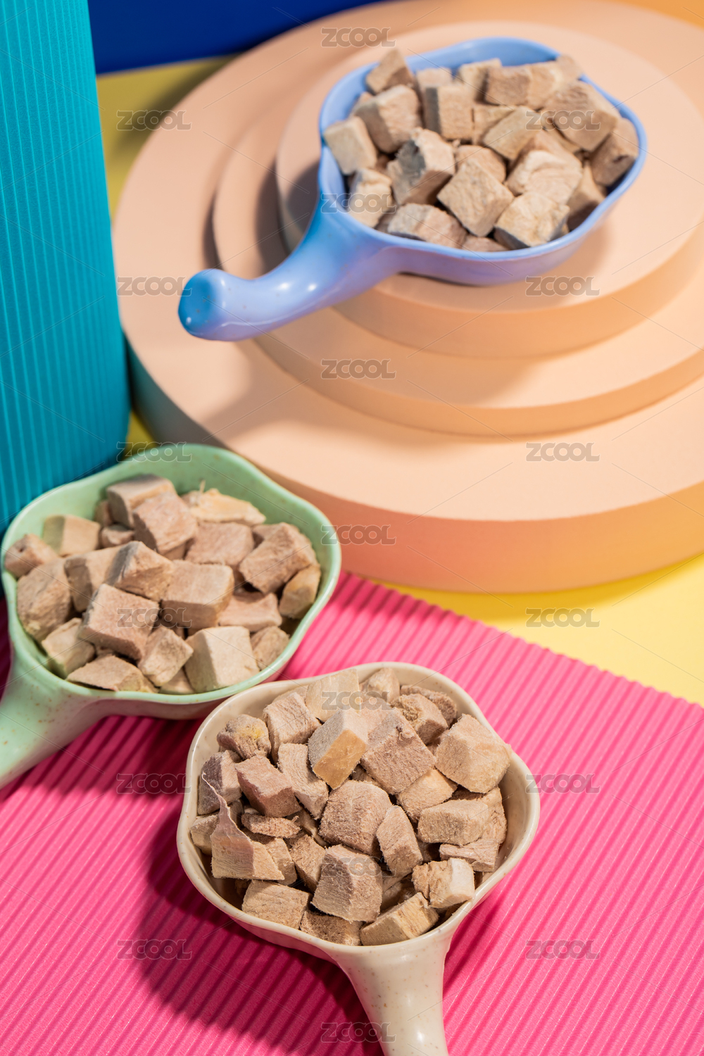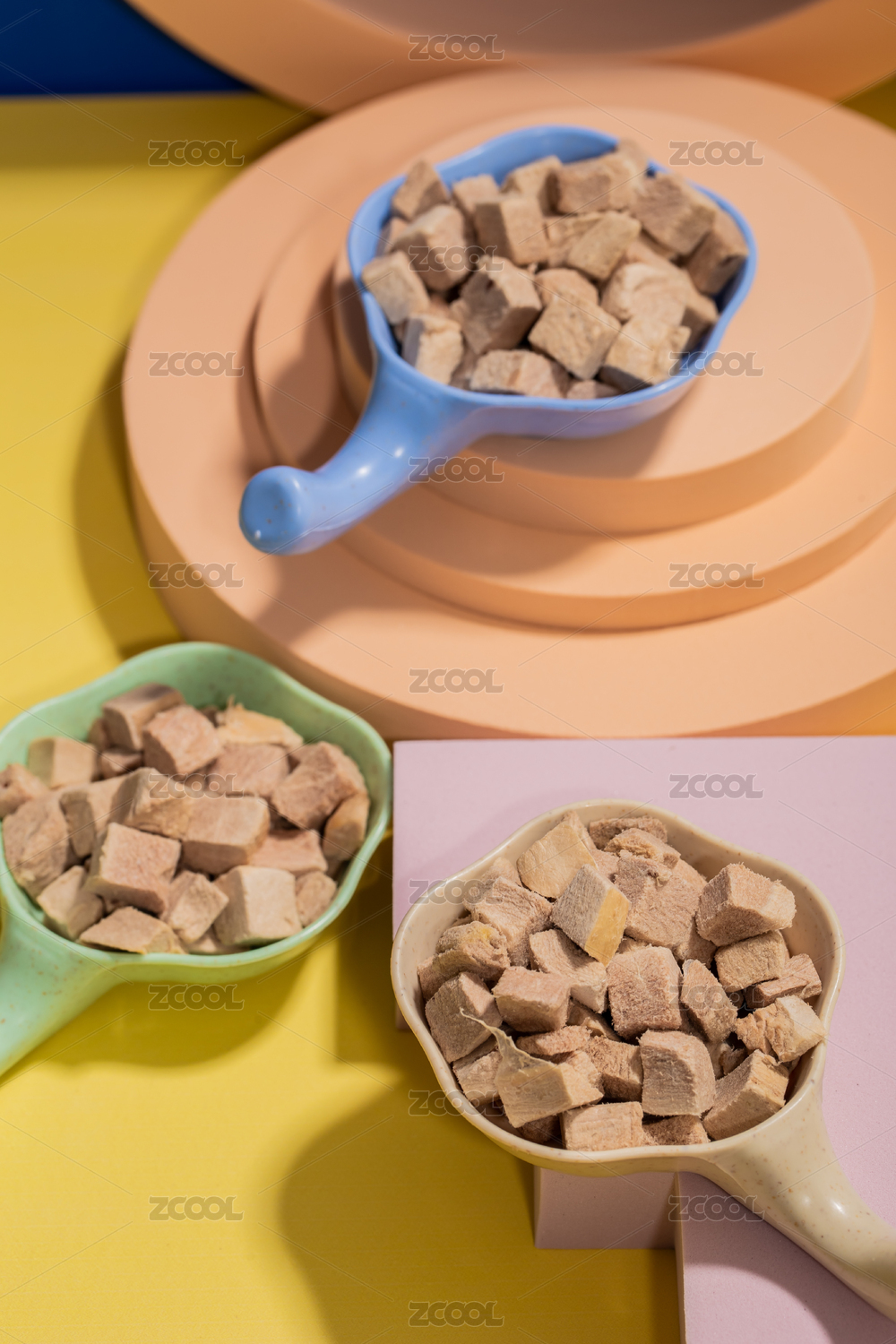 白色背景上擺放的寵物食品貓糧狗糧