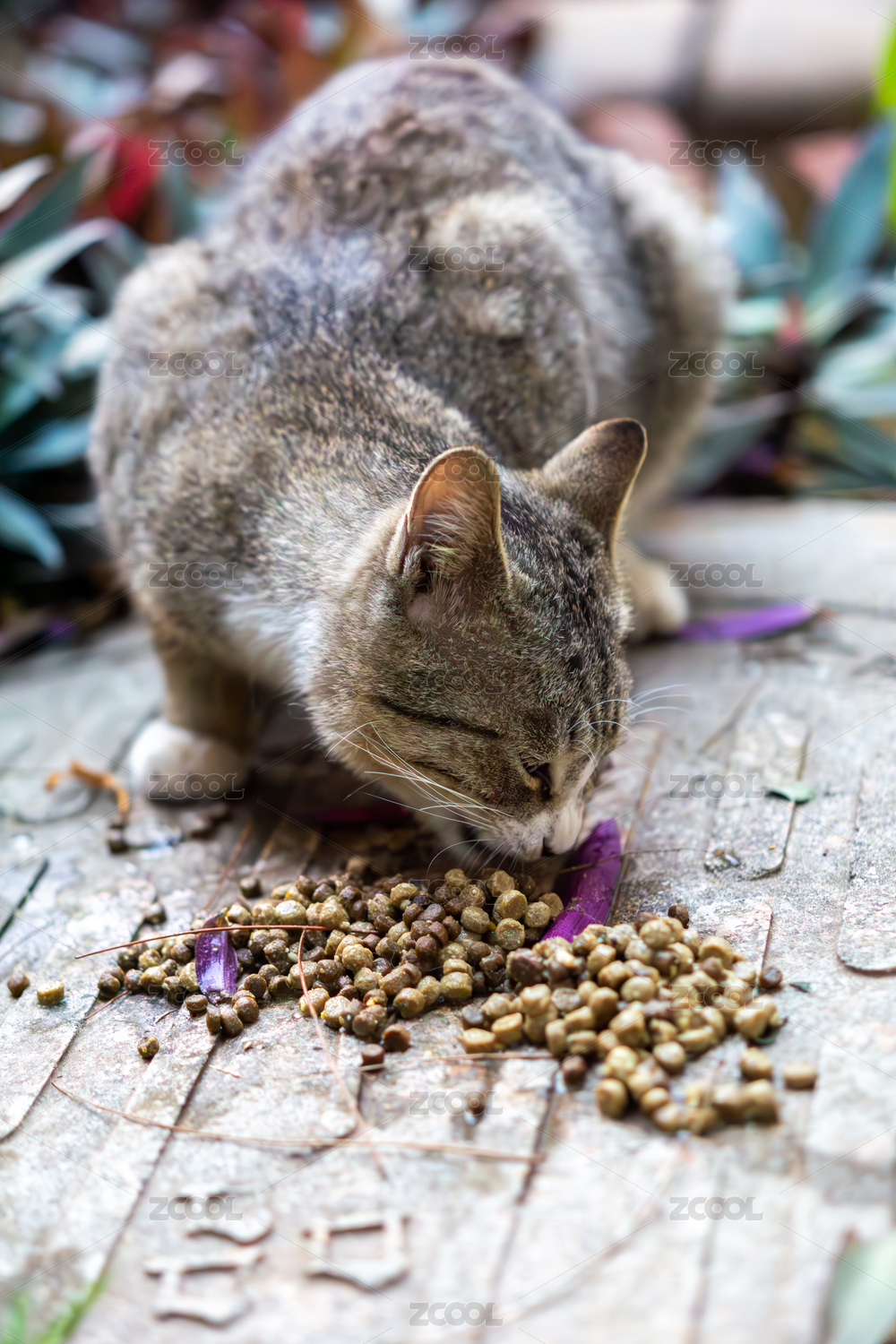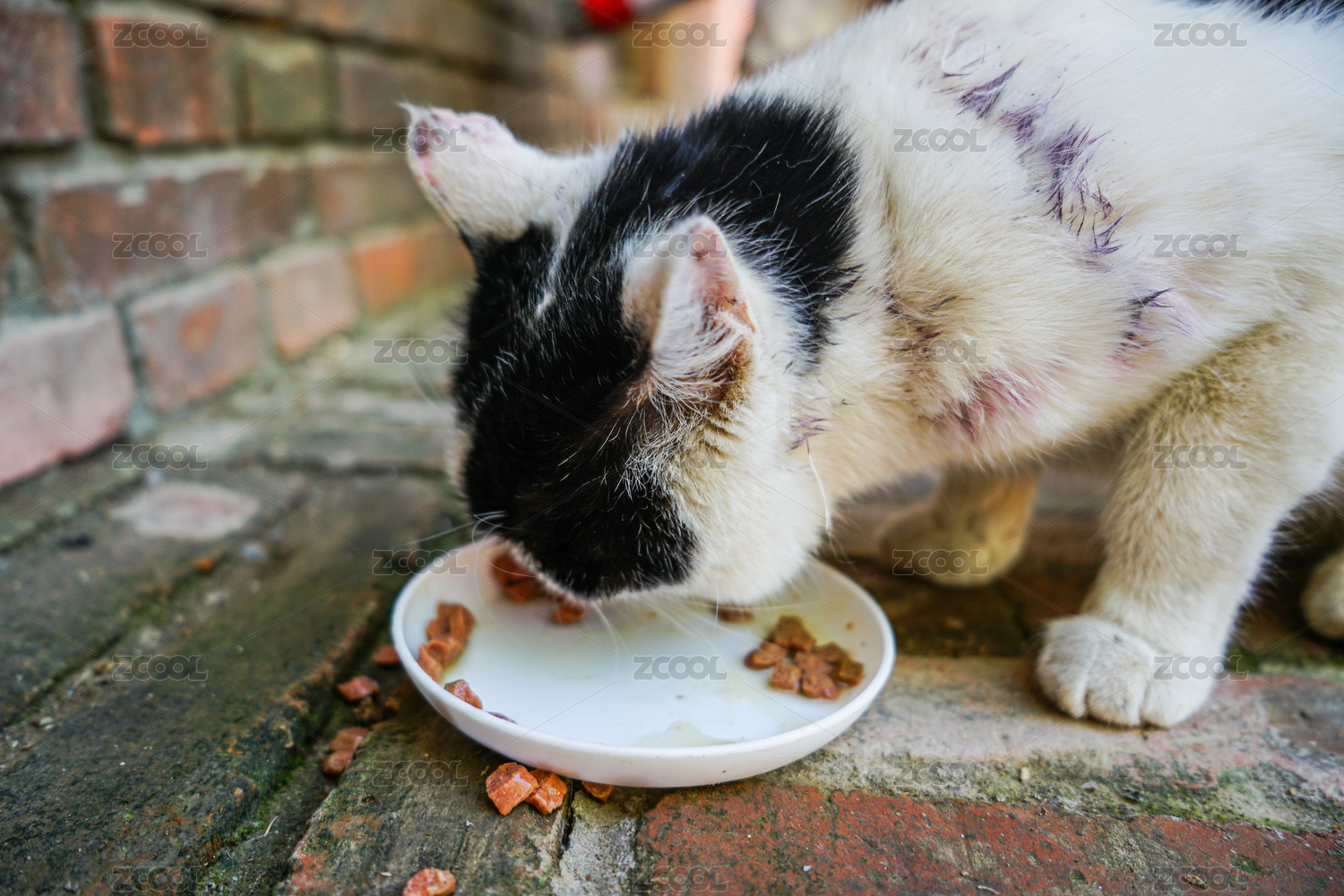 流浪貓寵物貓在吃貓糧