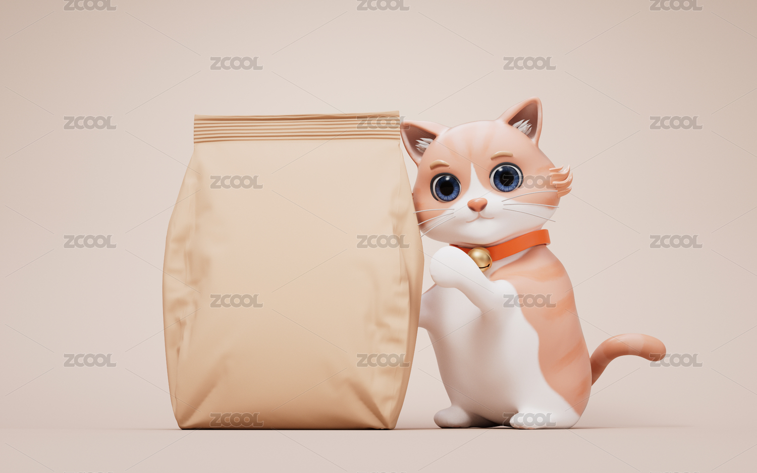 卡通貓咪與貓糧3D渲染