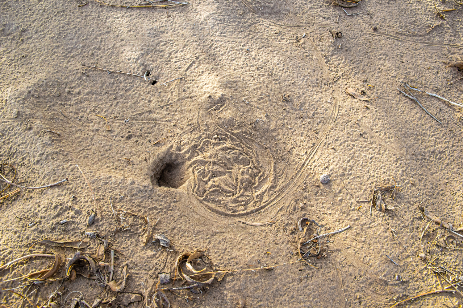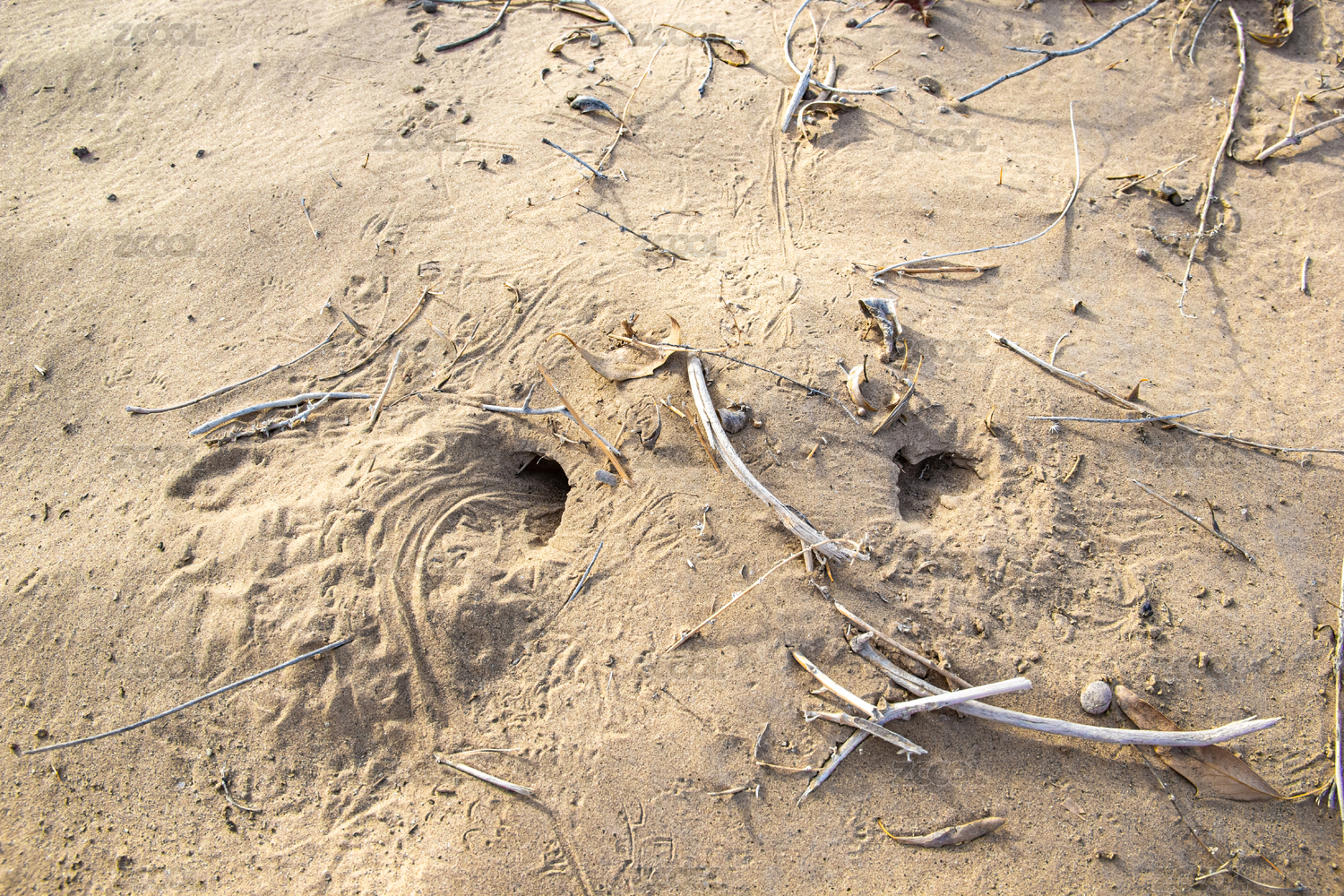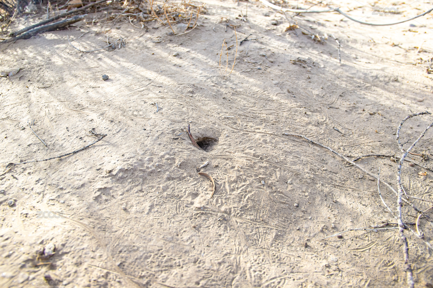 中國(guó)新疆塔克拉瑪干沙漠中沙地上的蜥蜴洞穴