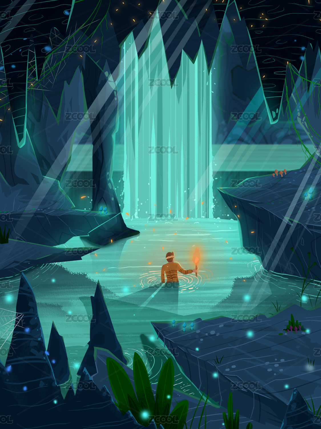 洞穴冰洞探險(xiǎn)戶(hù)外水晶寶石創(chuàng)意設(shè)計(jì)藝術(shù)插畫(huà)