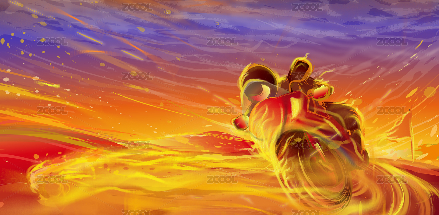 疾馳的摩托賽車手在跑道上畫出只豹子