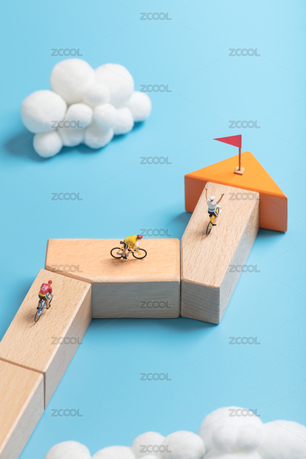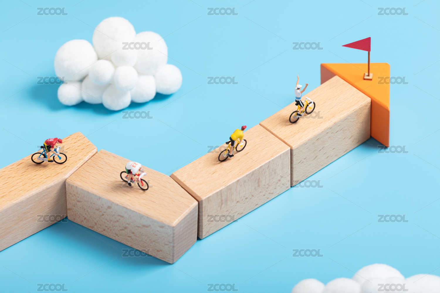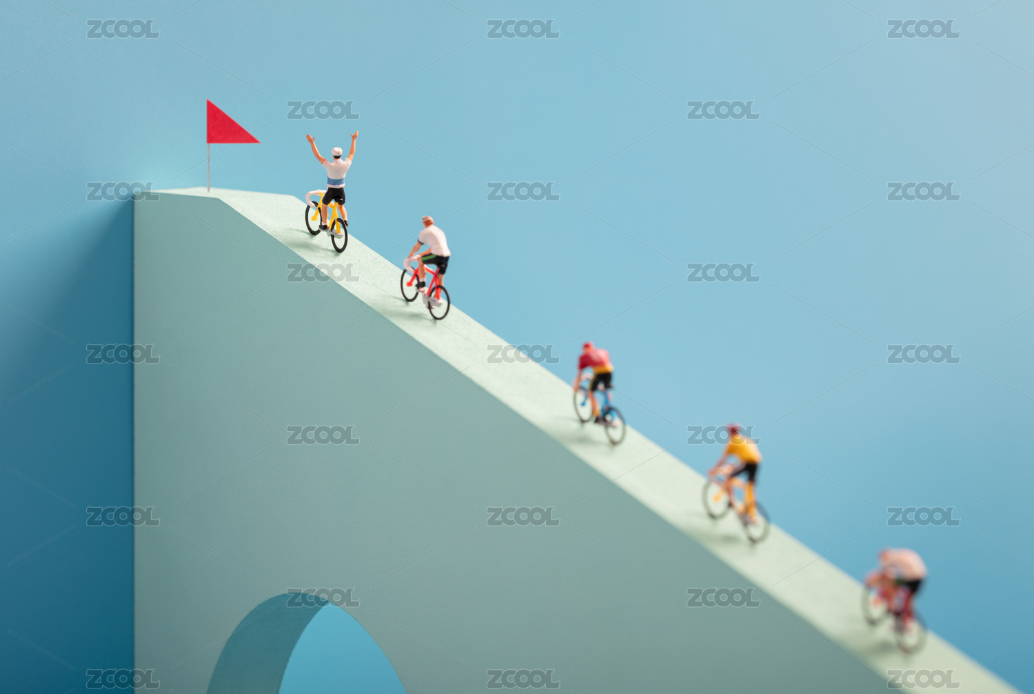 微縮創(chuàng)意幾何斜坡上到達(dá)終點(diǎn)歡呼的賽車手