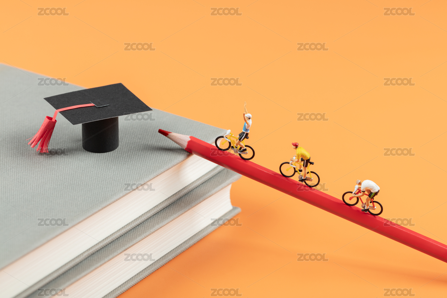 微縮創(chuàng)意書本上的博士帽與沖刺的賽車手