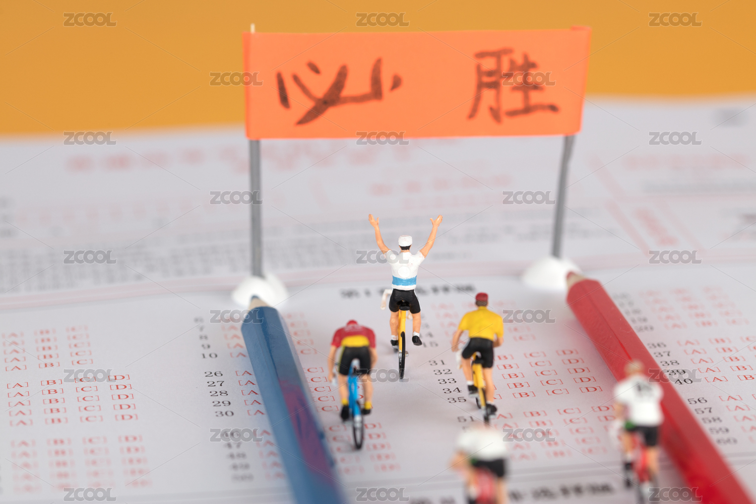 比賽的賽車手疾馳在答題卡上沖向勝利的終點(diǎn)