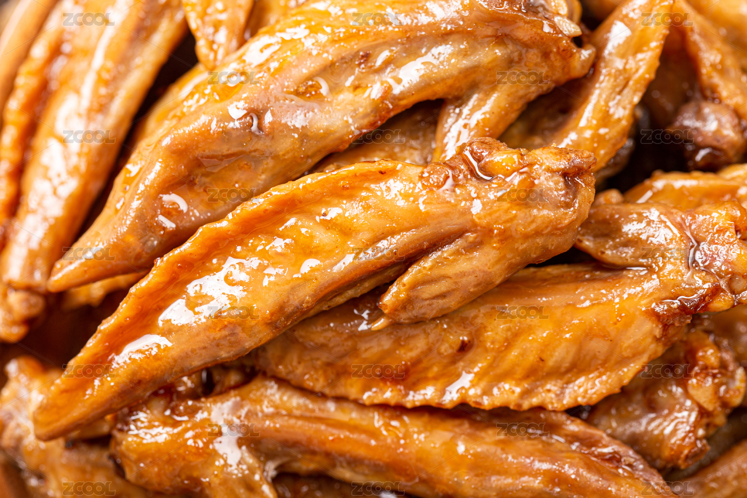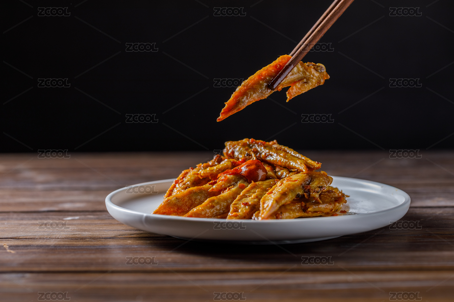 正在夾起放在白瓷盤里的川味麻辣鹵雞翅尖