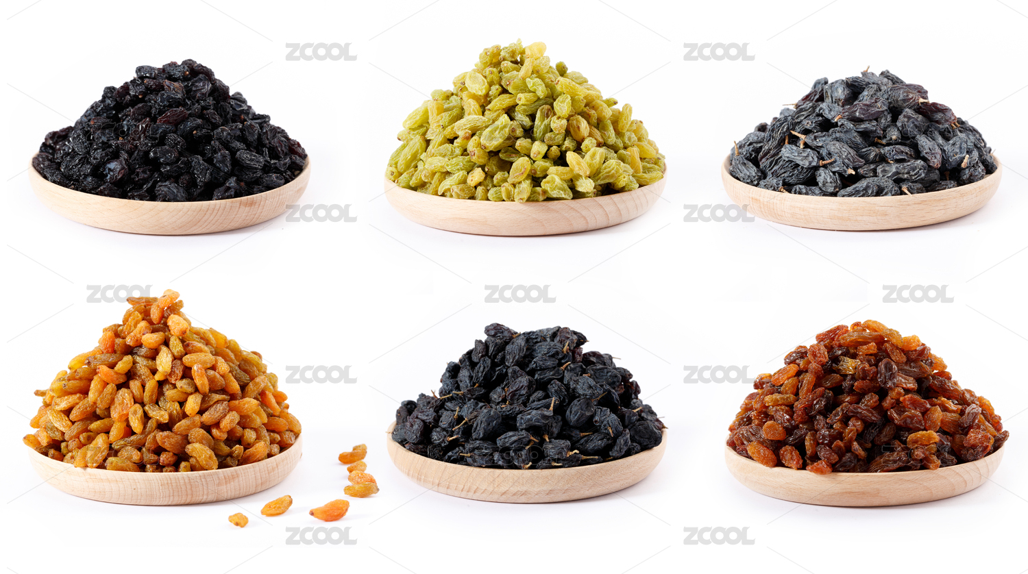 裝在木盤子里的多種葡萄干組合