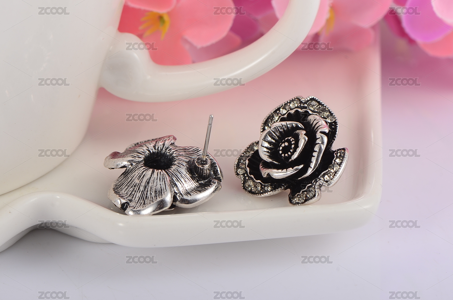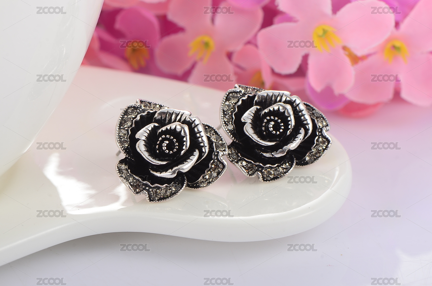 黑玫瑰水晶鉆石寶石耳釘耳環(huán)
