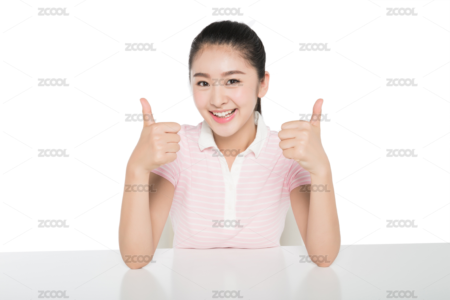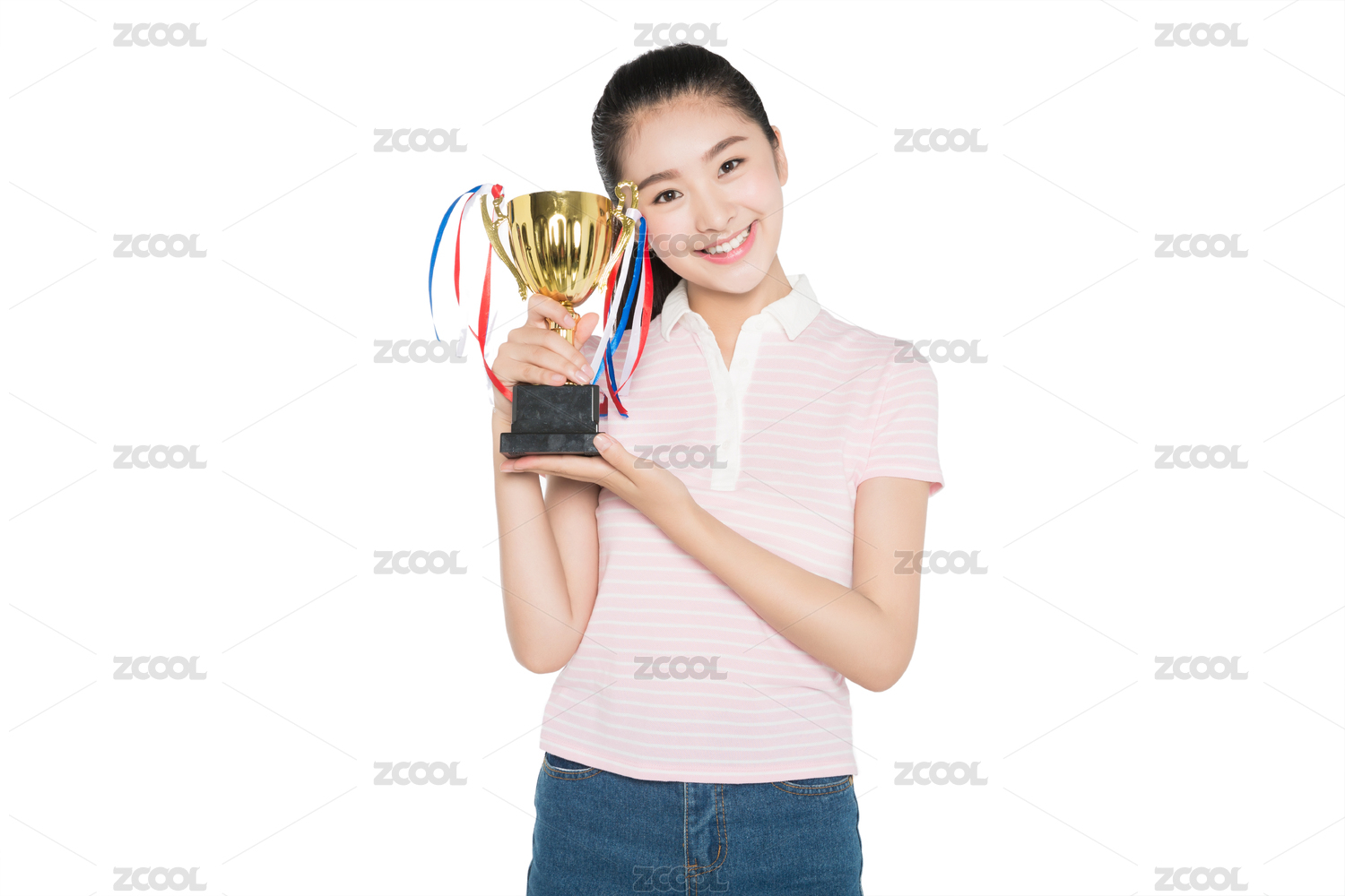 影棚拍攝,活潑美麗女學(xué)生展示獎(jiǎng)杯