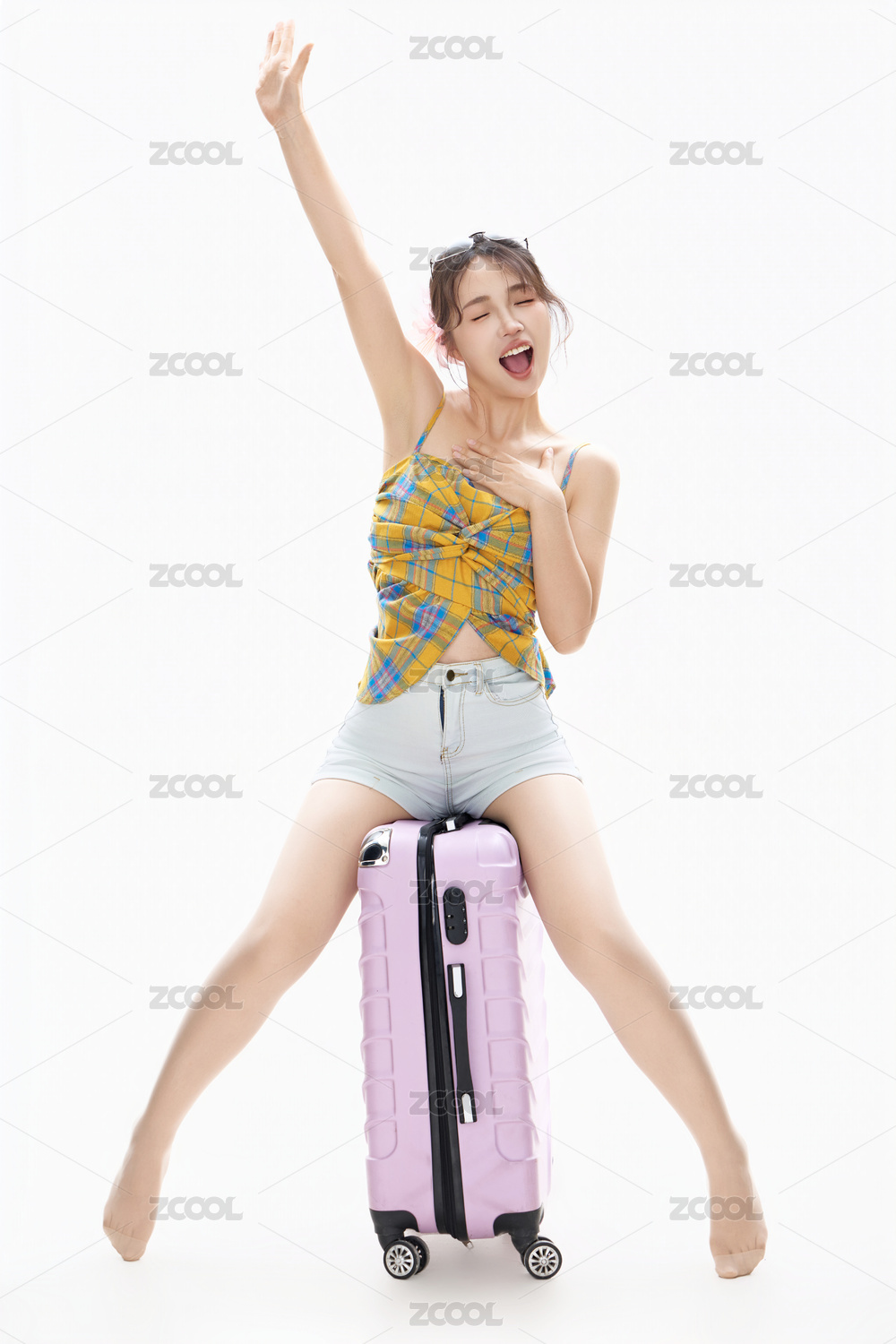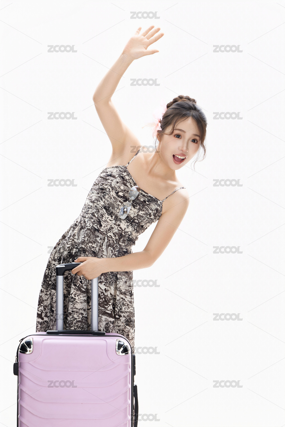 影棚拍攝夏季準(zhǔn)備出行旅行的青年女性形象