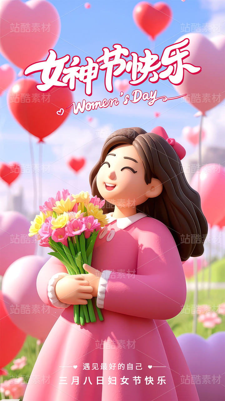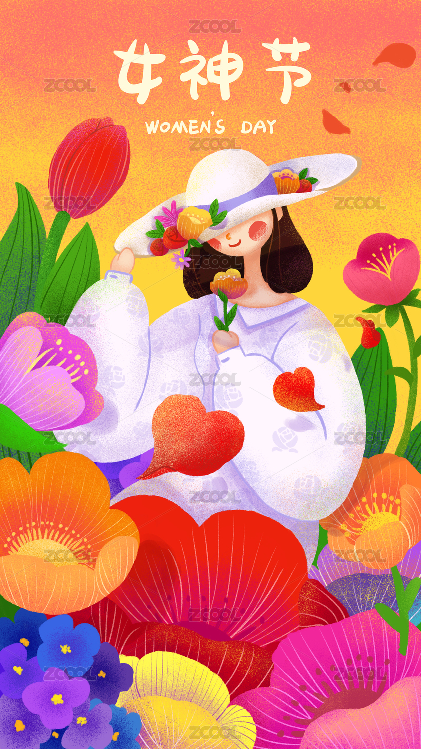 婦女節(jié)女王節(jié)女神節(jié)扁平女性愛意關(guān)懷粉色