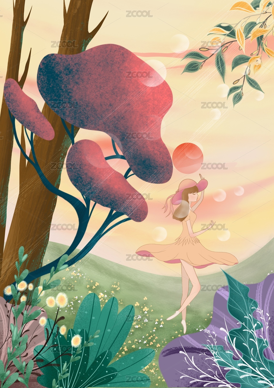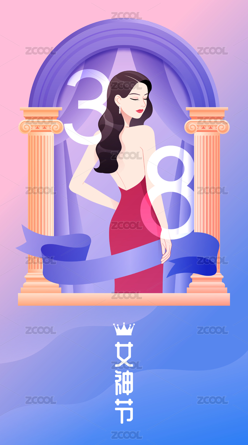 女神節(jié)穿著禮服的美女和歐式拱門插畫