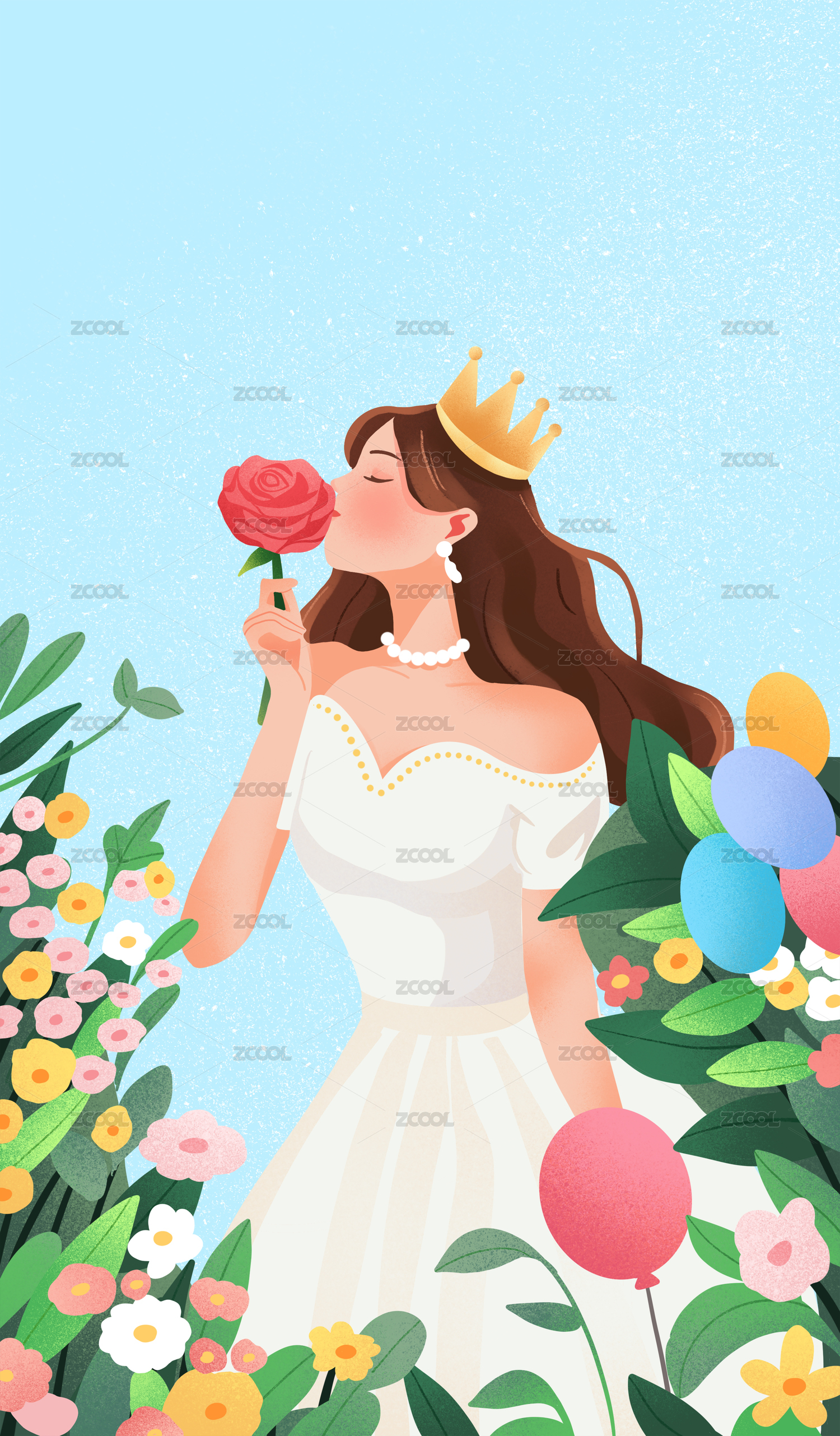 卡通女神節(jié)女王節(jié)美女手捧鮮花插畫