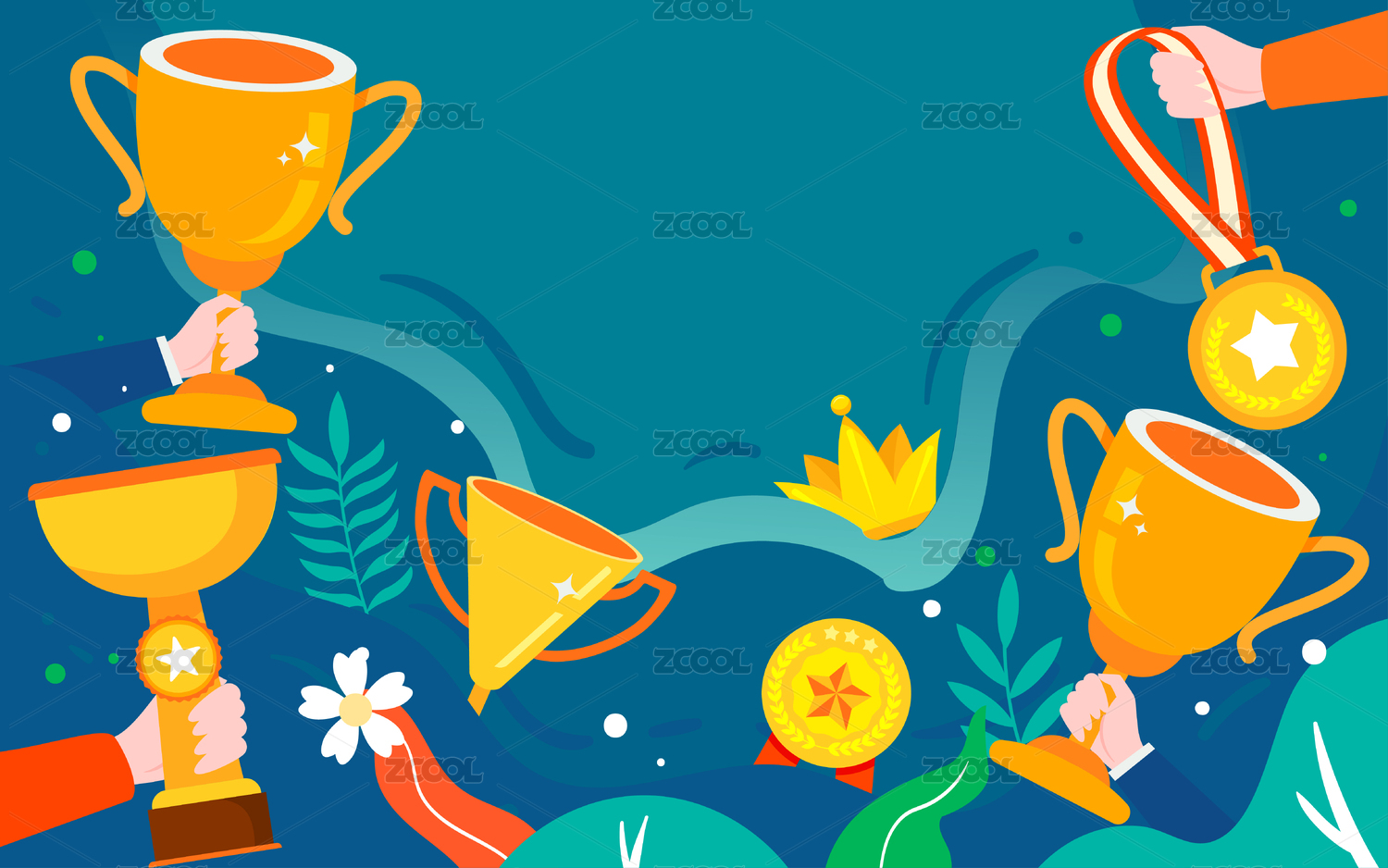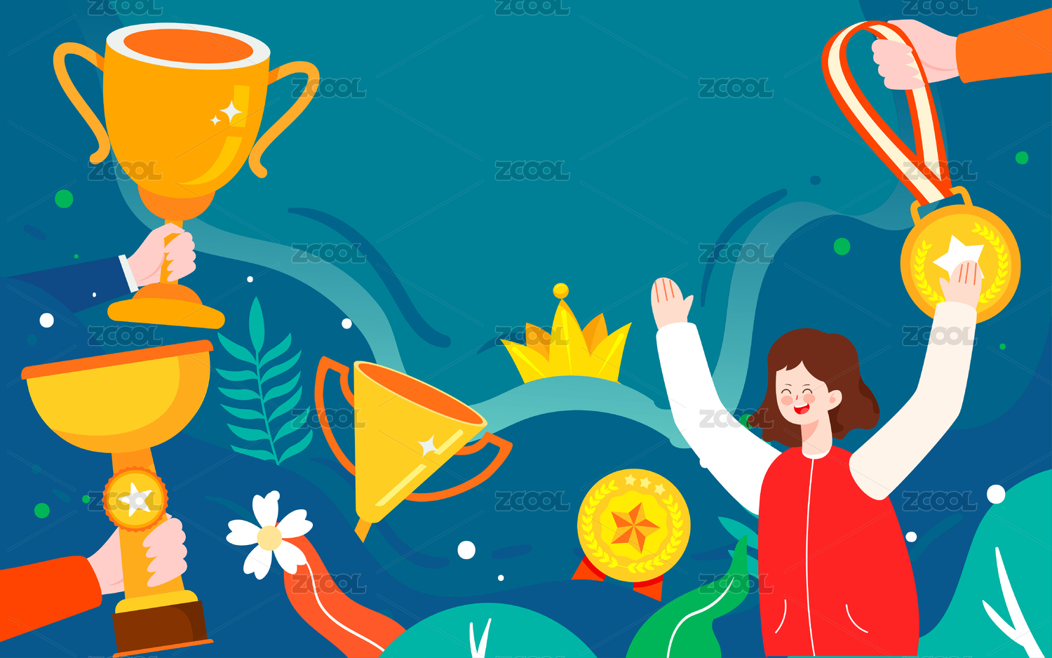 冬奧會比賽獎杯冠軍插畫運動會競賽獎牌海報