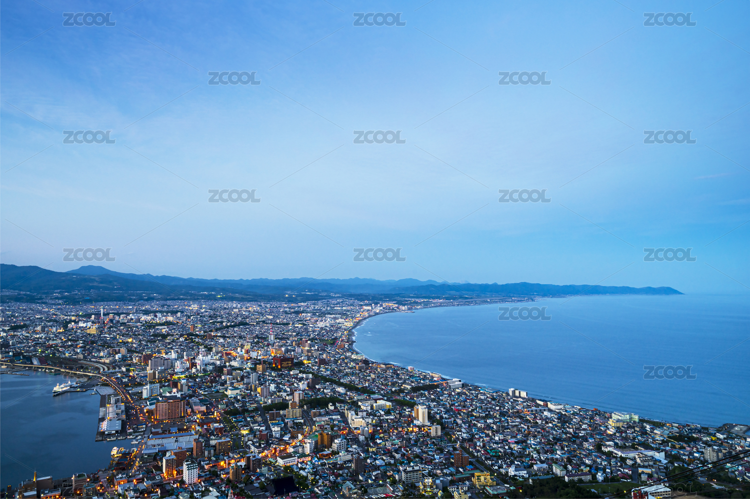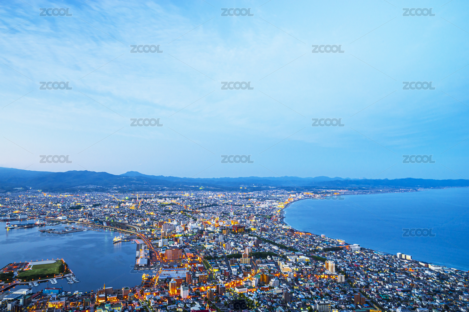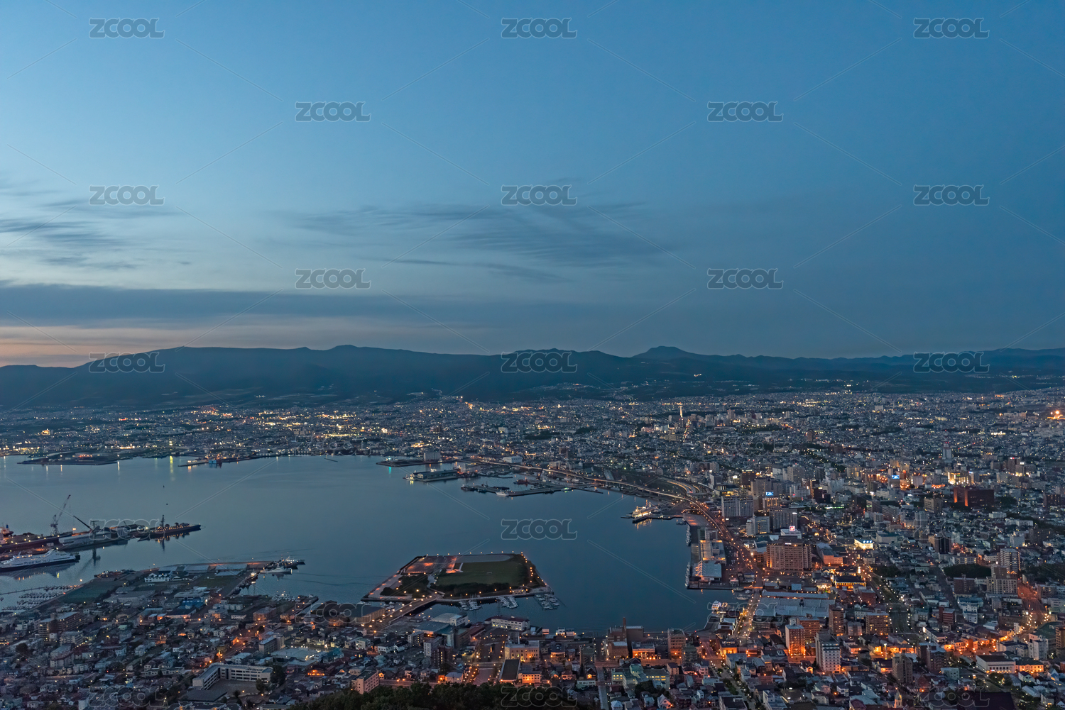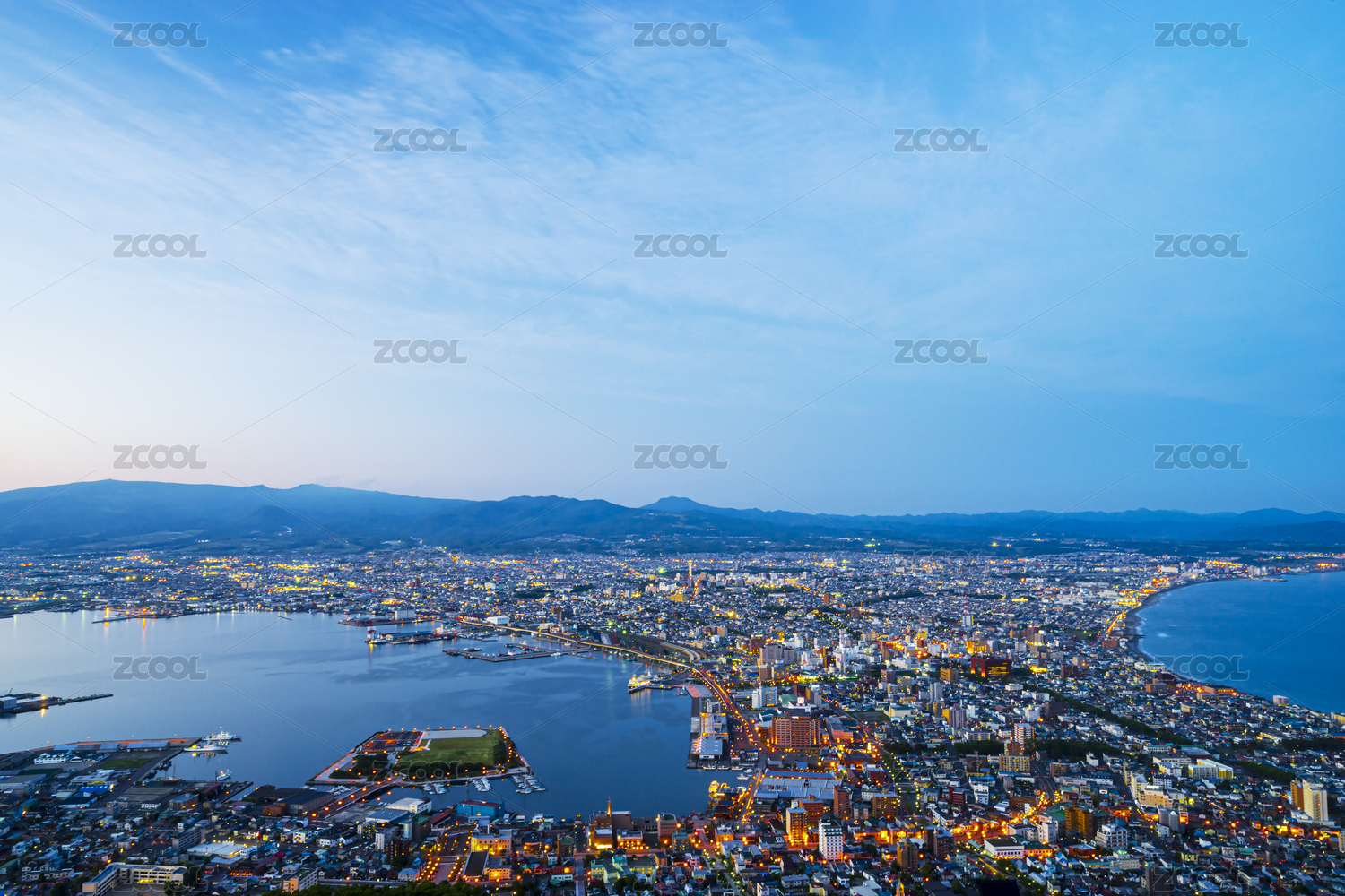 日本北海道函館五棱郭公園夏季夜景航拍視角