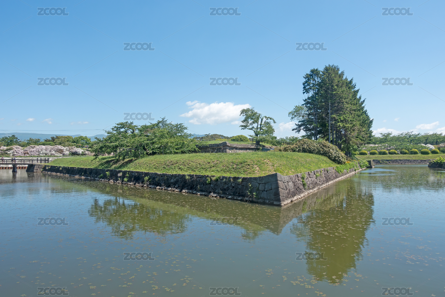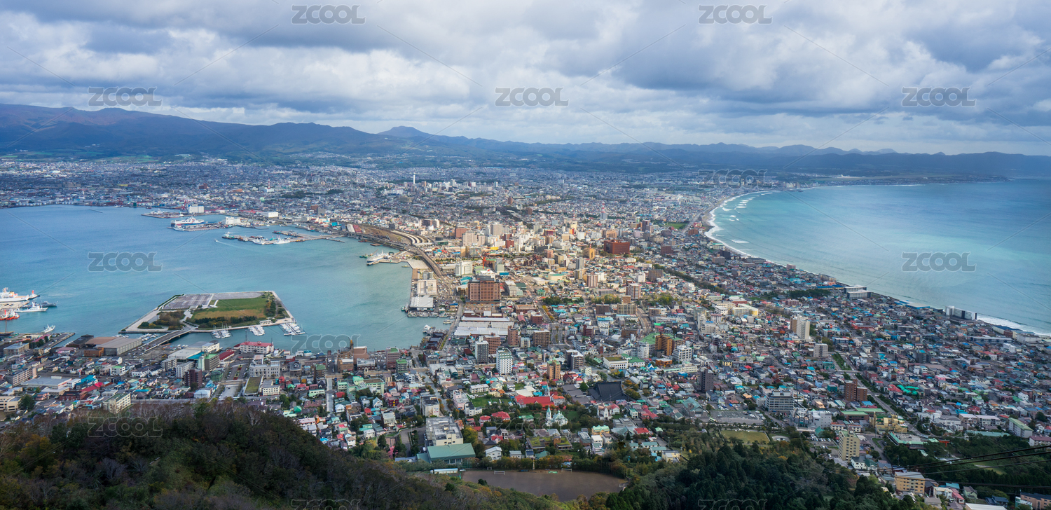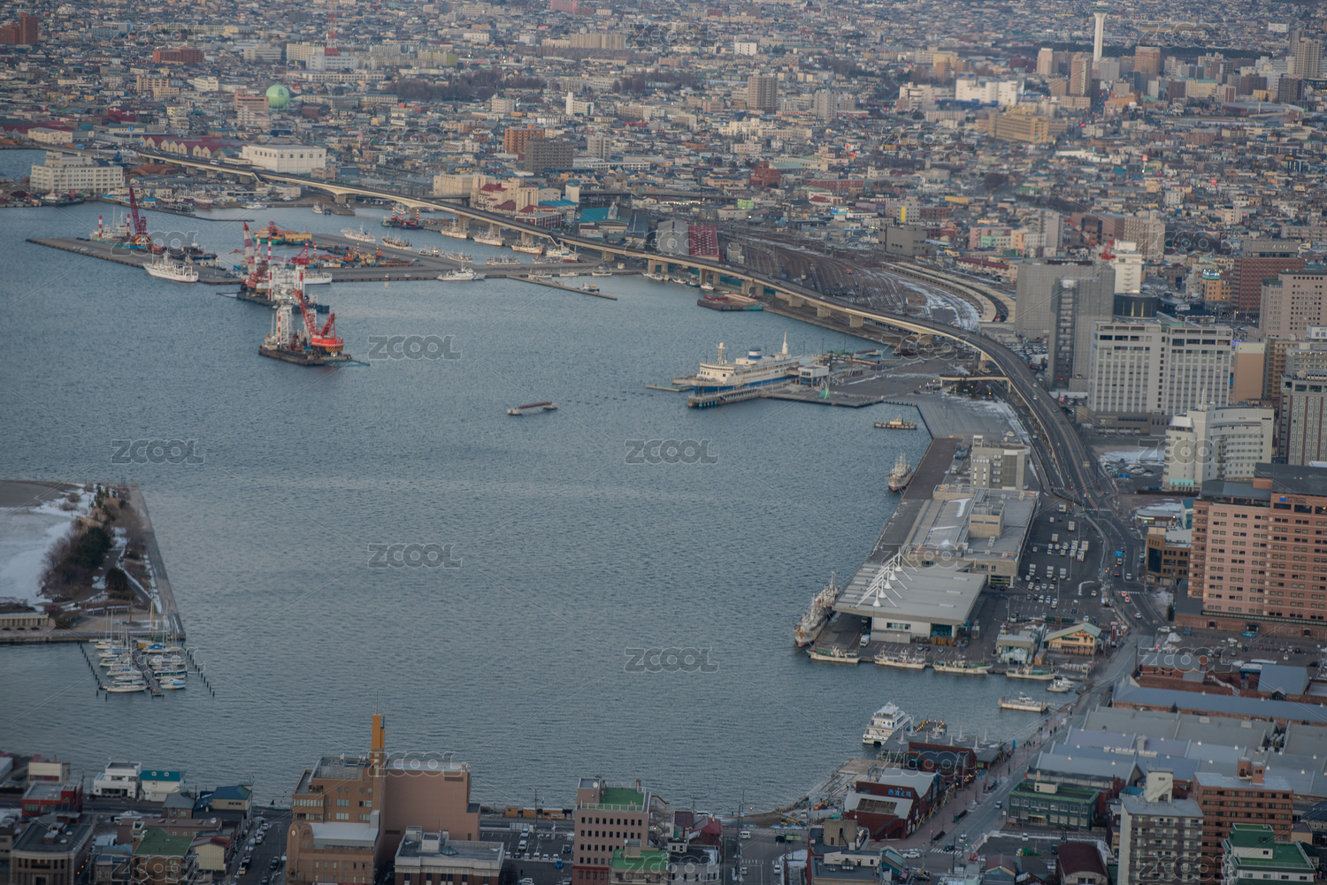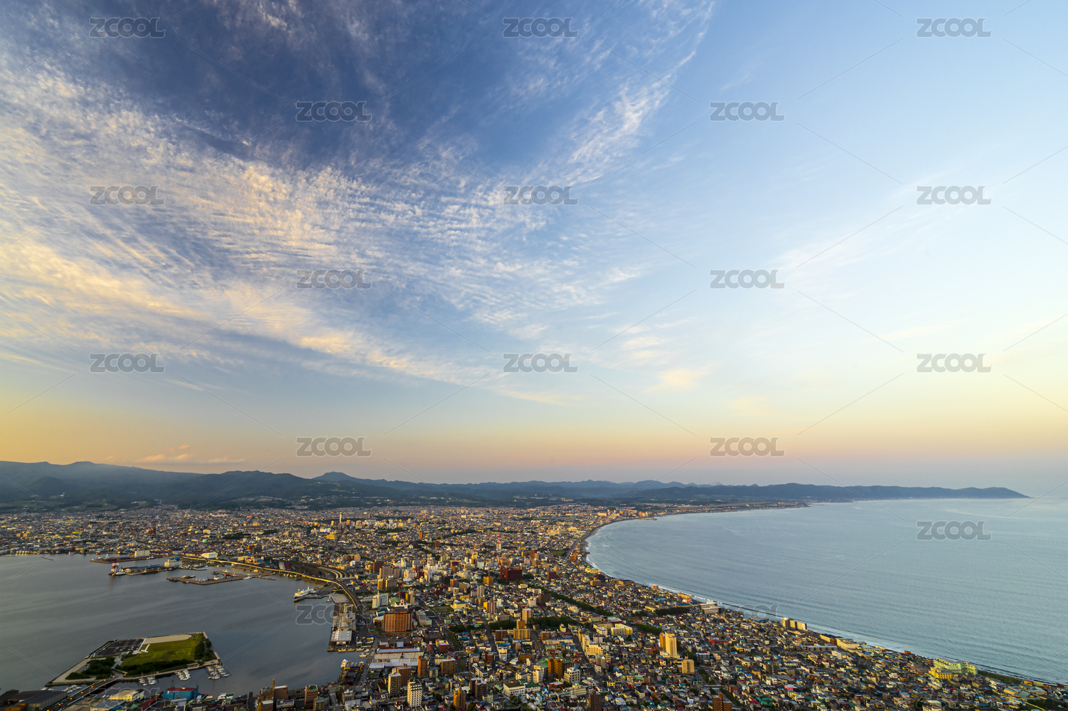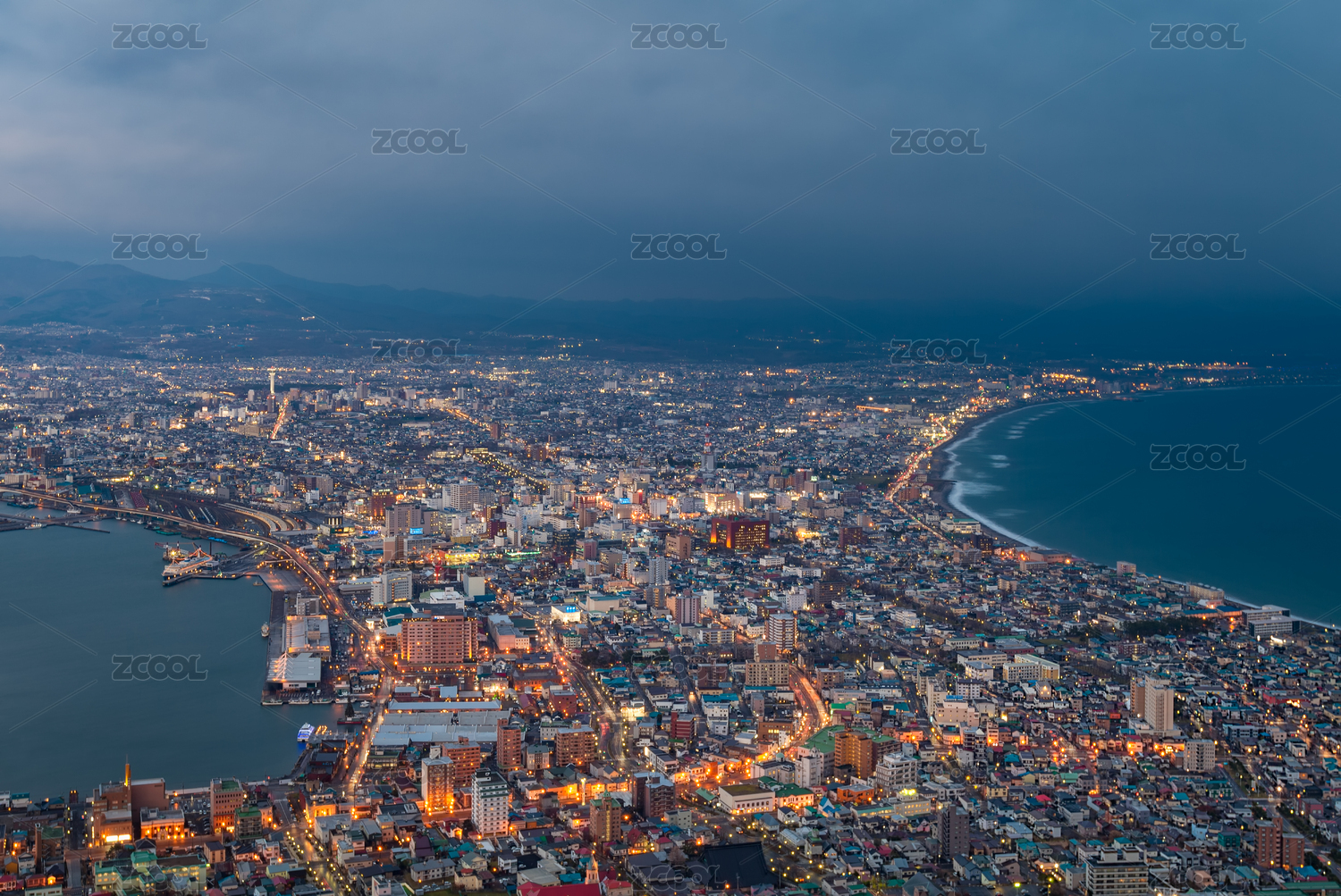 日本北海道函館五棱郭公園夏季夜景航拍視角