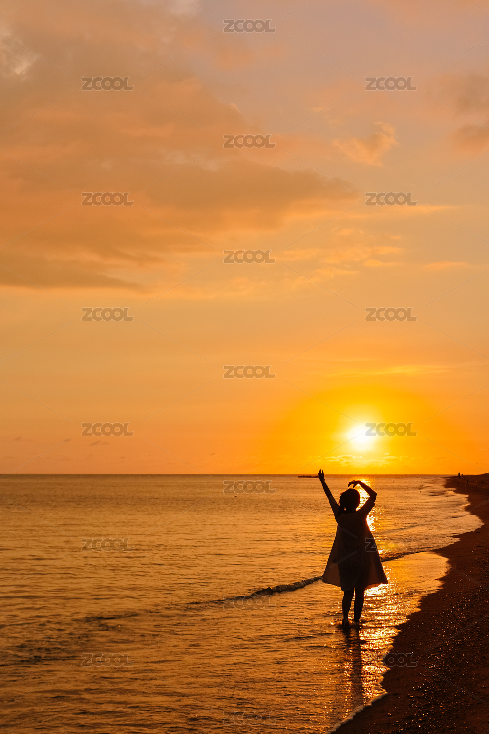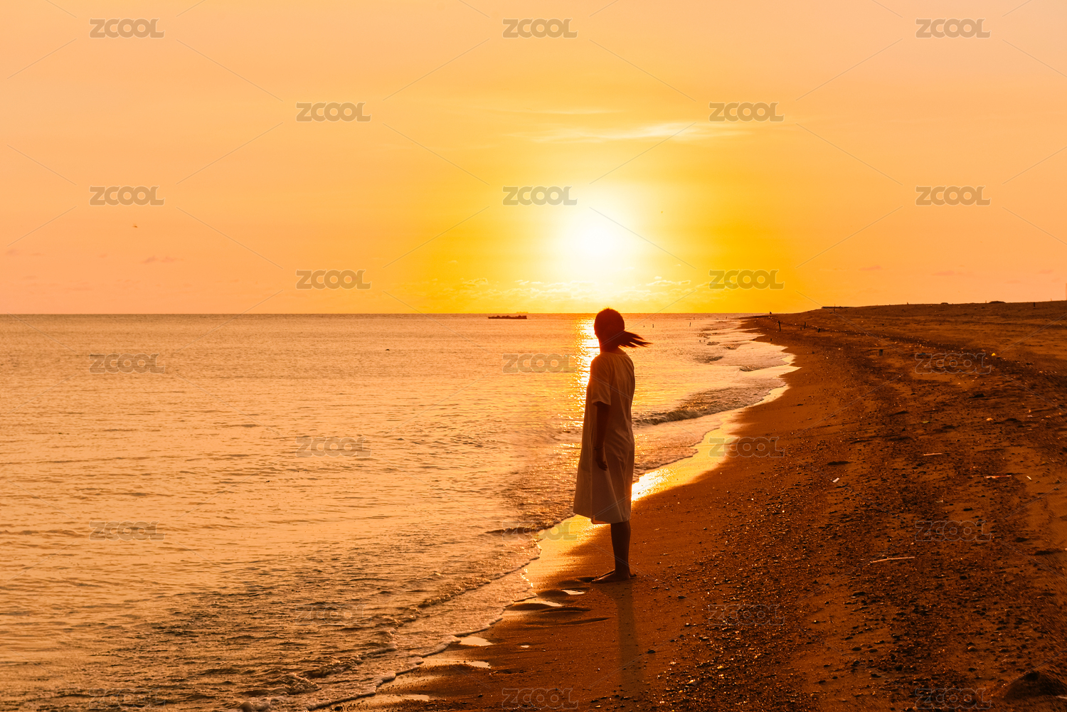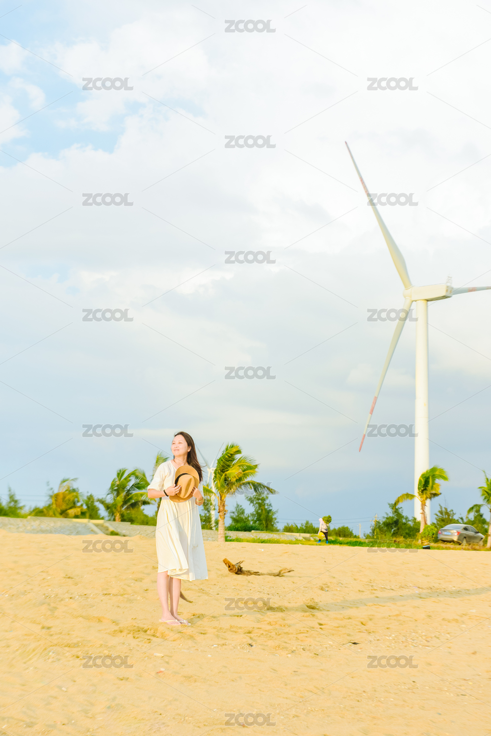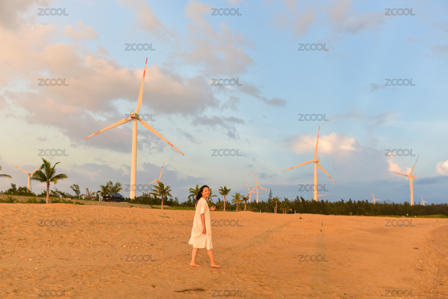 亞洲女性在海南省東方市海南環(huán)島路邊沙灘上