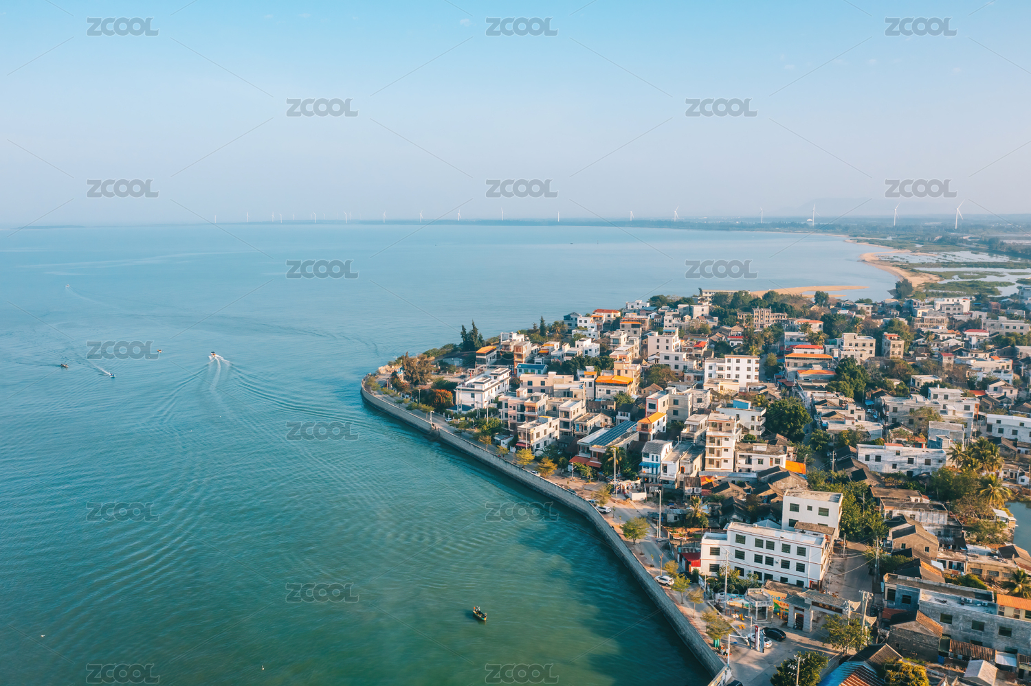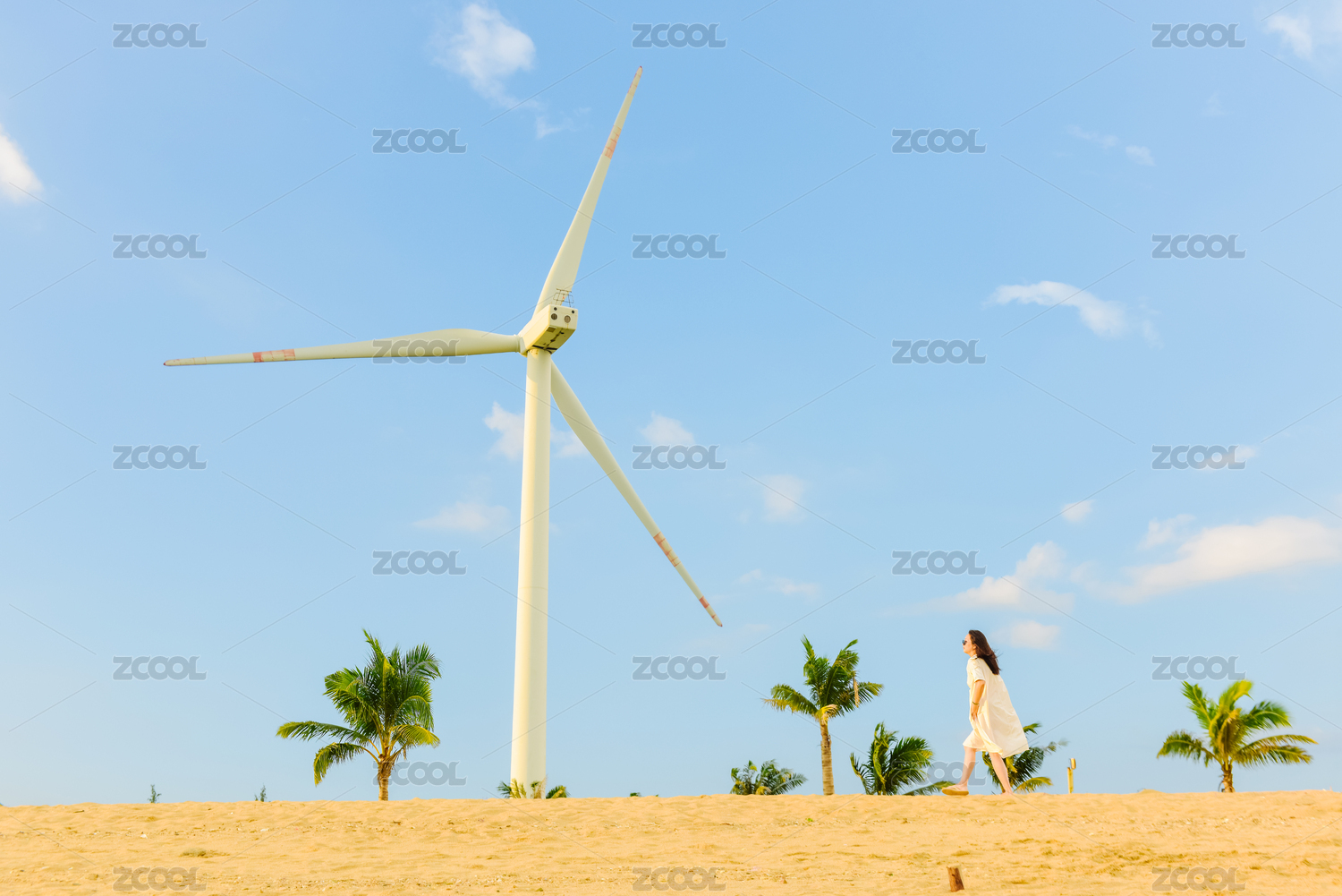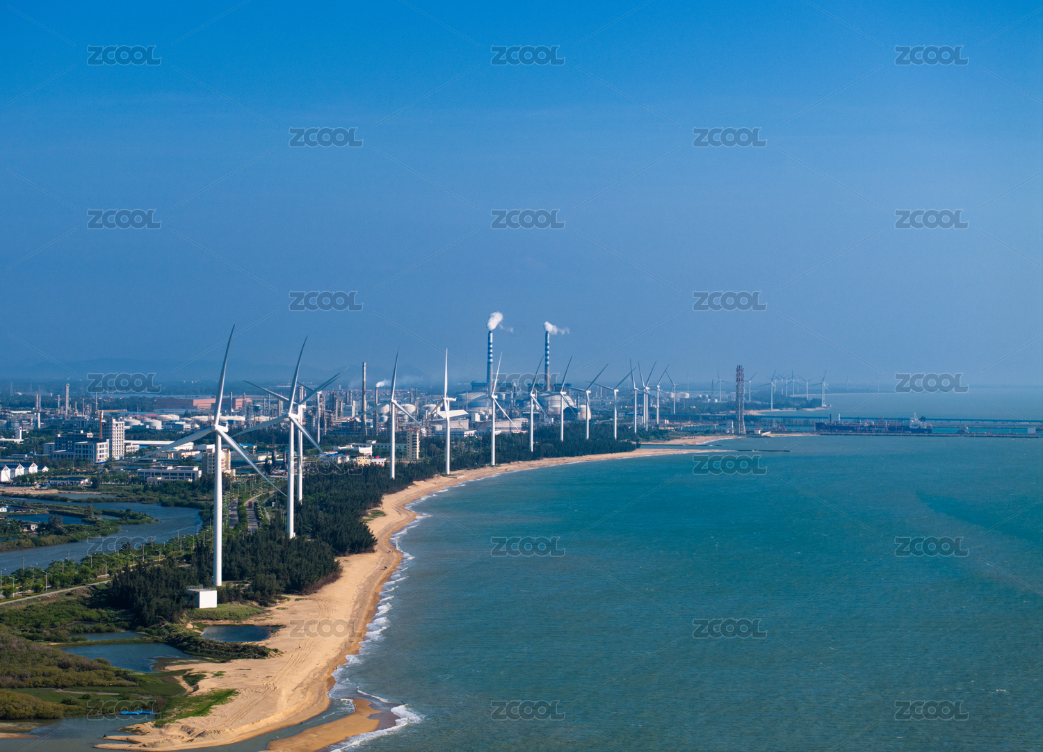 中國海南東方市海濱的風(fēng)力發(fā)電機(jī)航拍圖