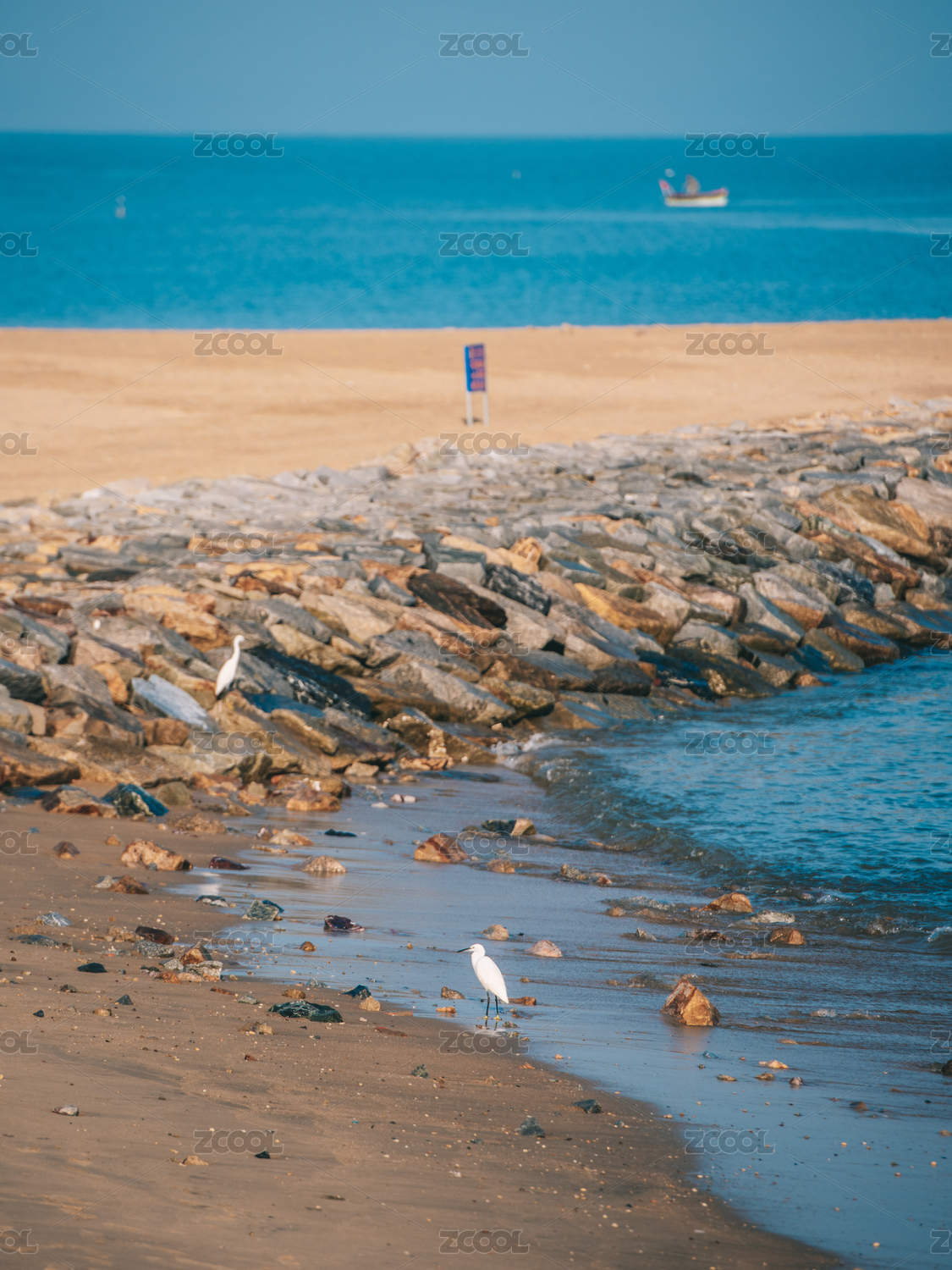 亞洲女性走在海南省東方市環(huán)島路邊的沙灘上