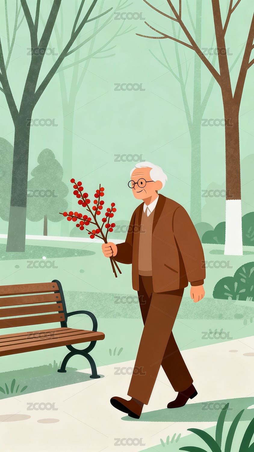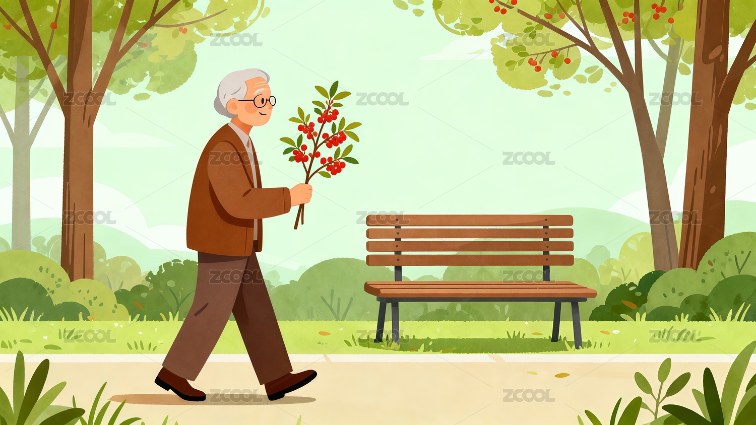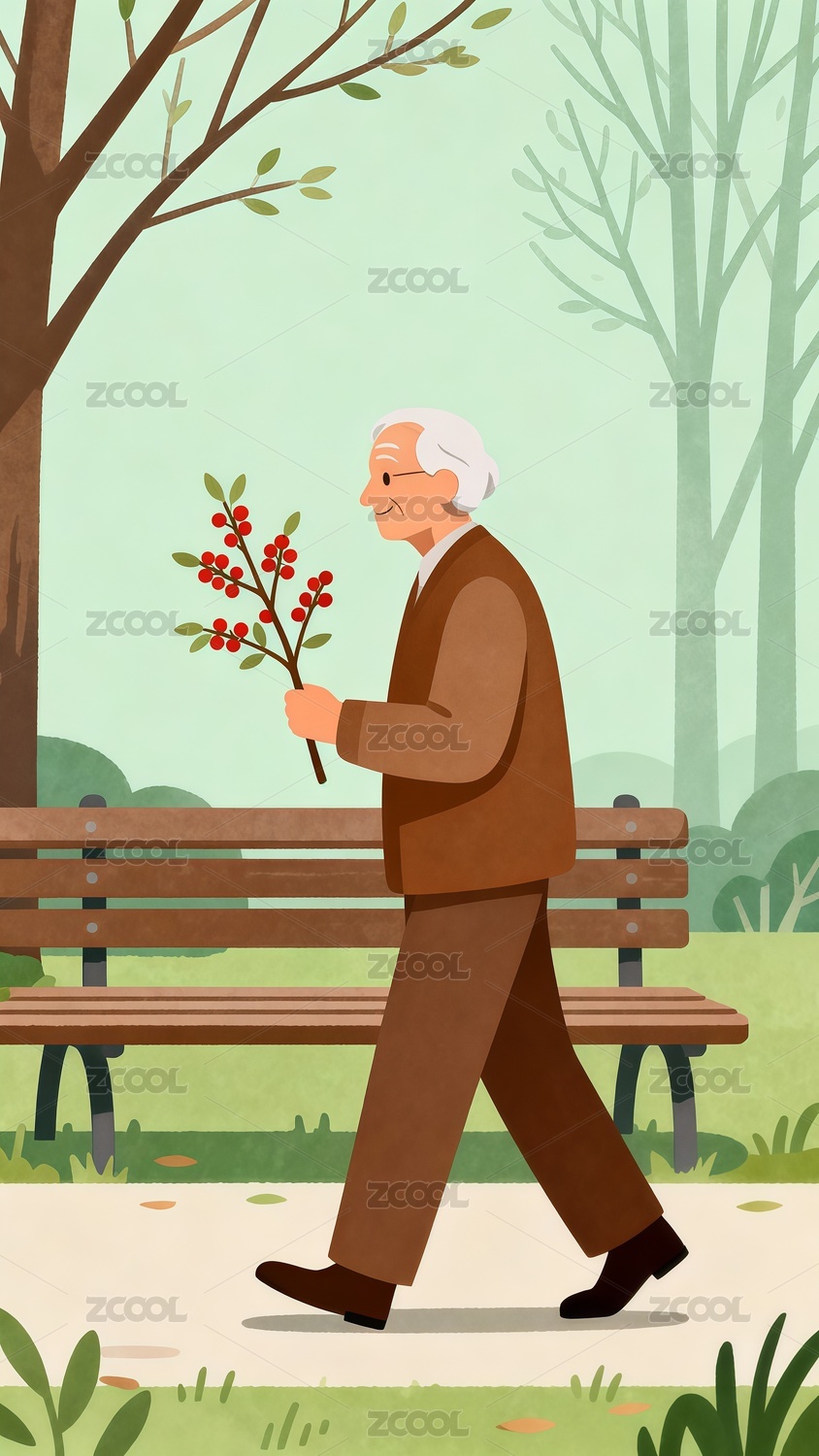 重陽節(jié)老人手持茱萸枝散步扁平風(fēng)格插畫