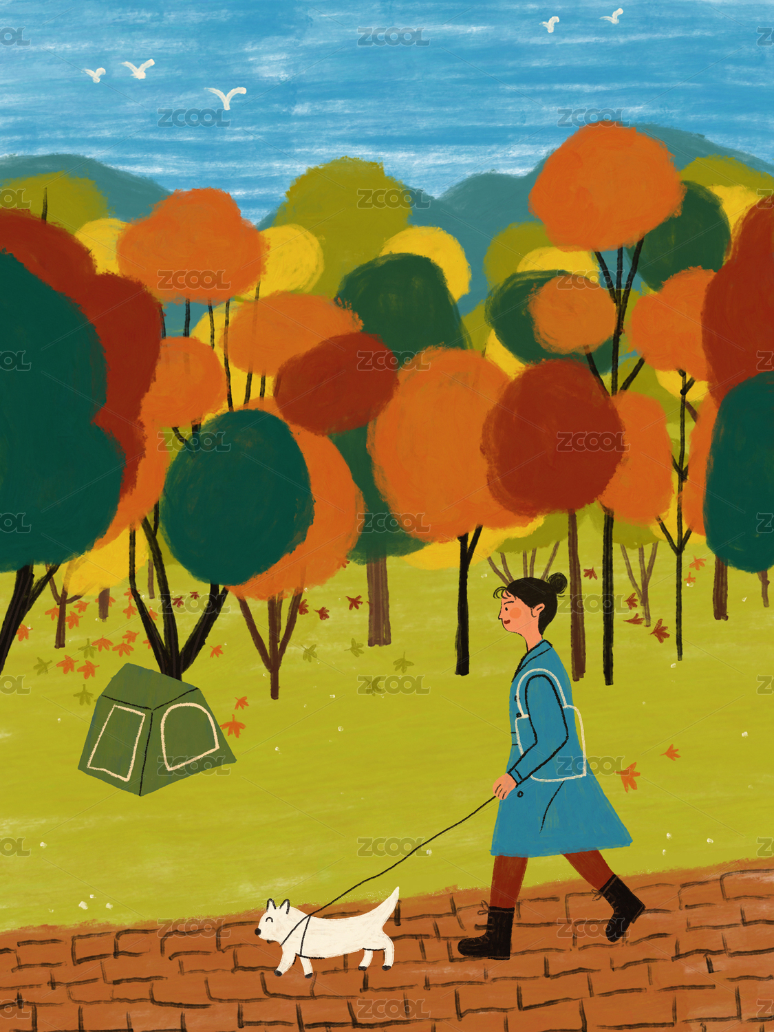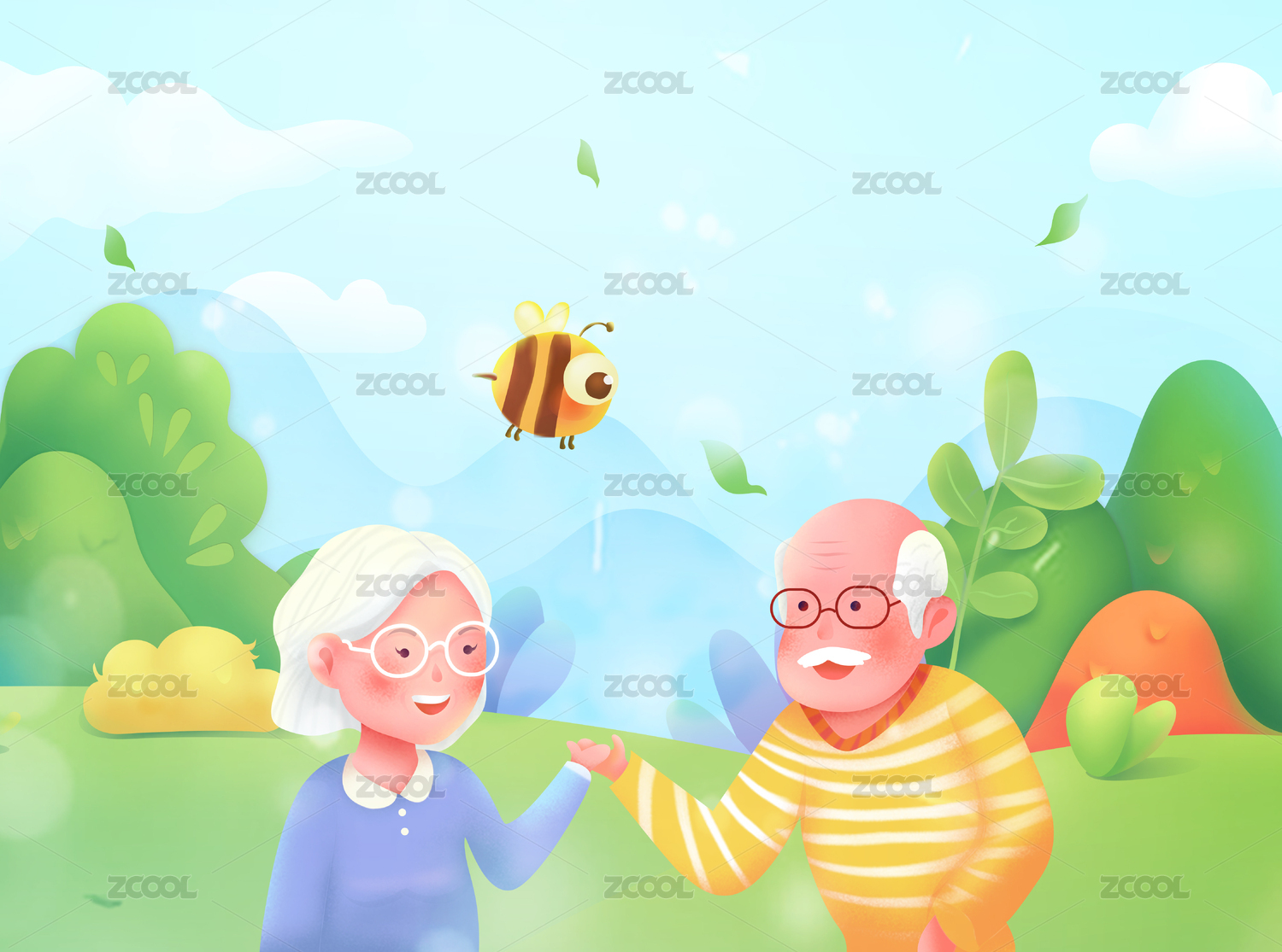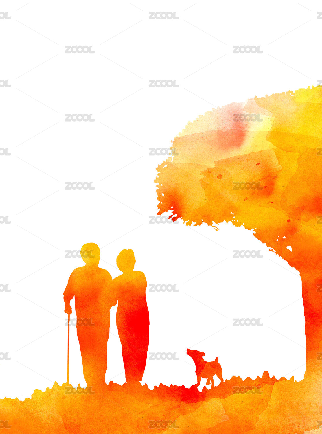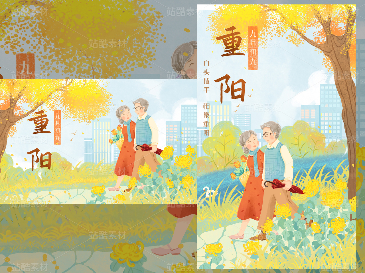 重陽節(jié)老人手持茱萸枝散步扁平風(fēng)格插畫