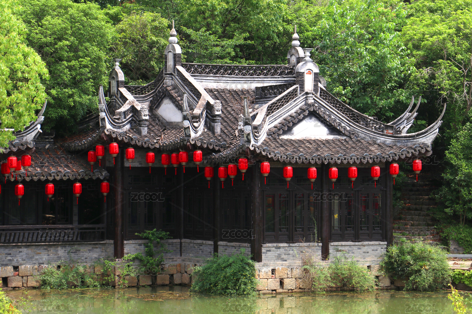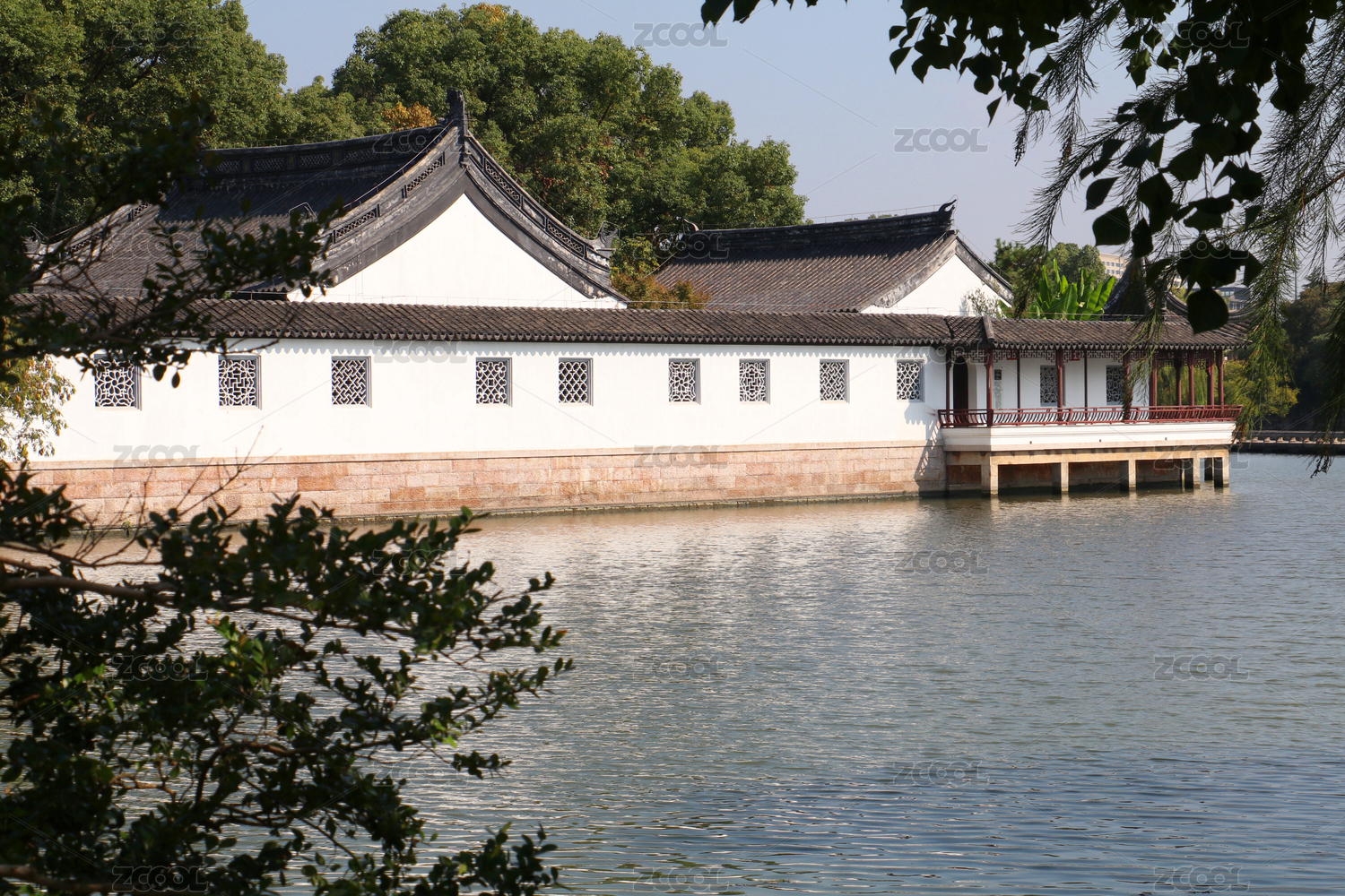 飛檐廊庭碧水旁