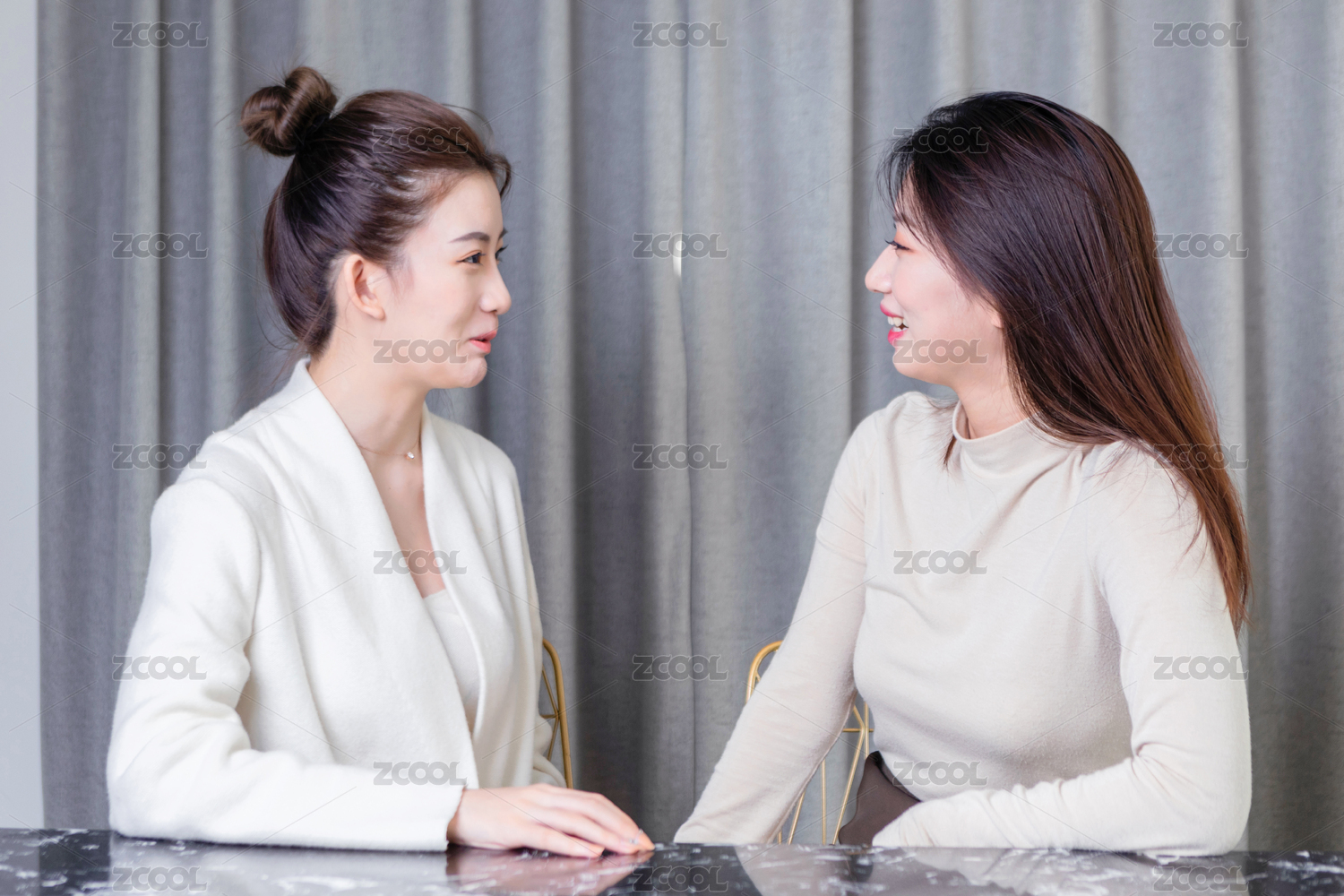 美女正在和自己的閨蜜聊天